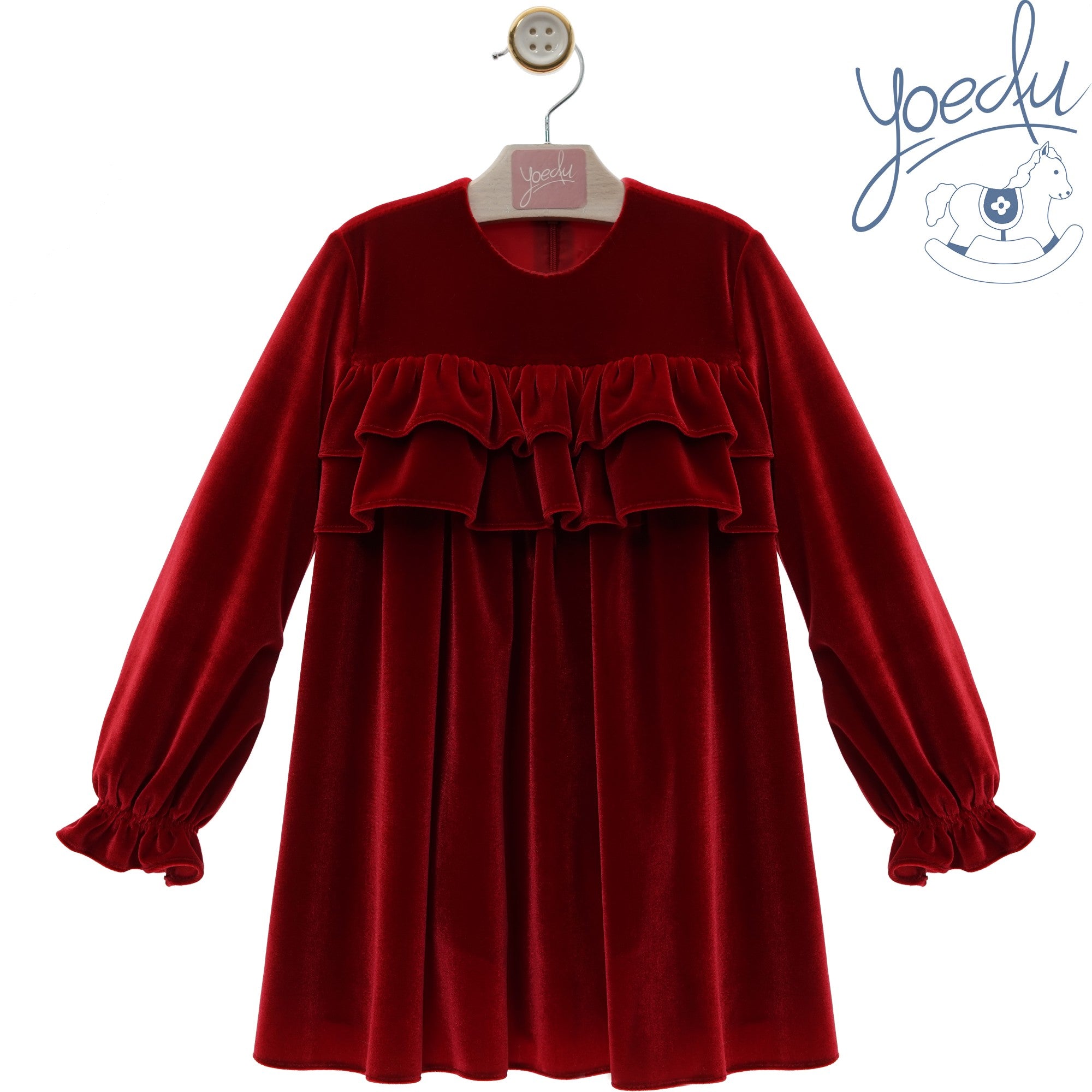 Abito in maglina lurex con balze in morbido tulle. Polsini  con elastico interno per facilitare la vestibilità. Foderato