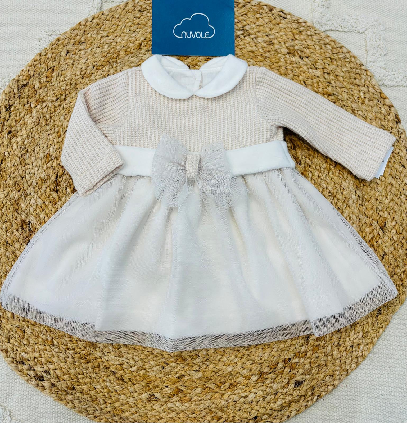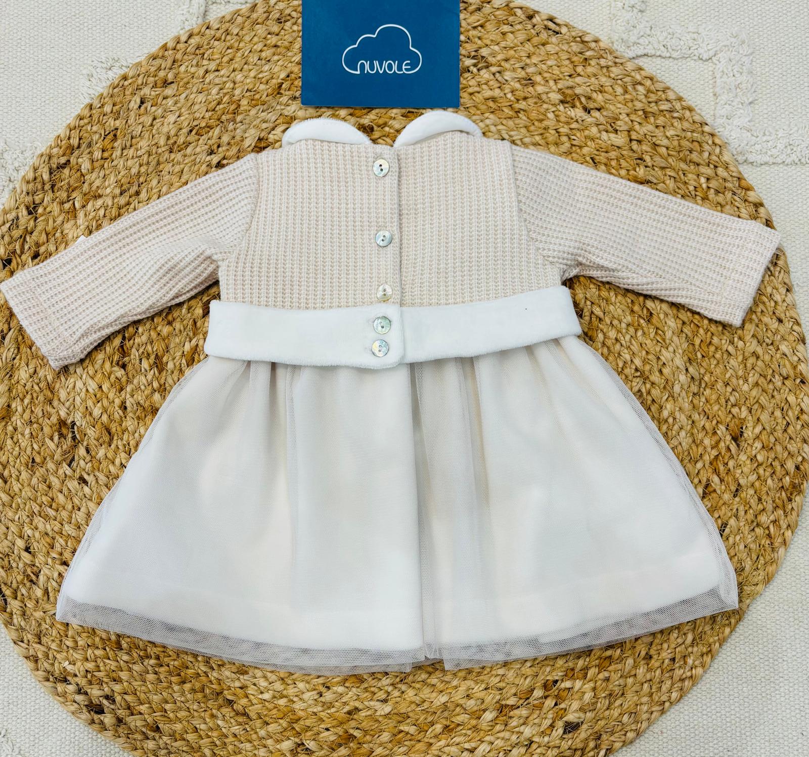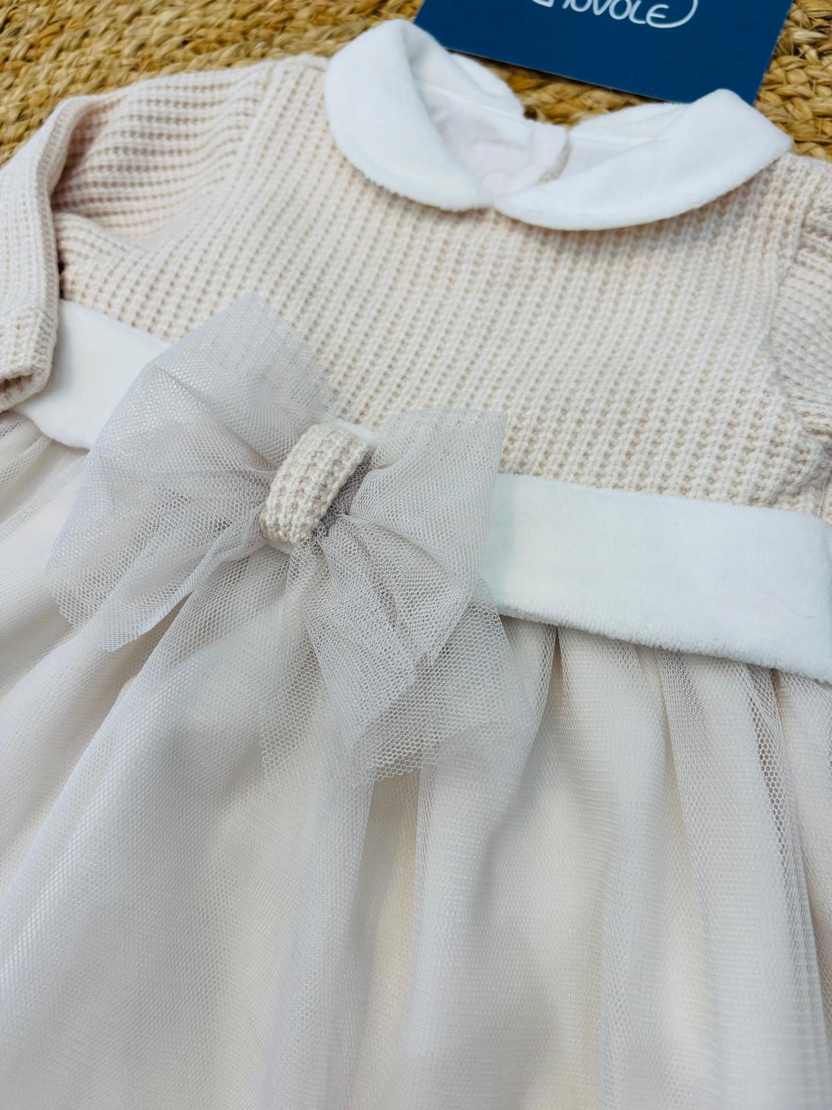 Delicato abito in maglina e ciniglia con romantica balza in tulle