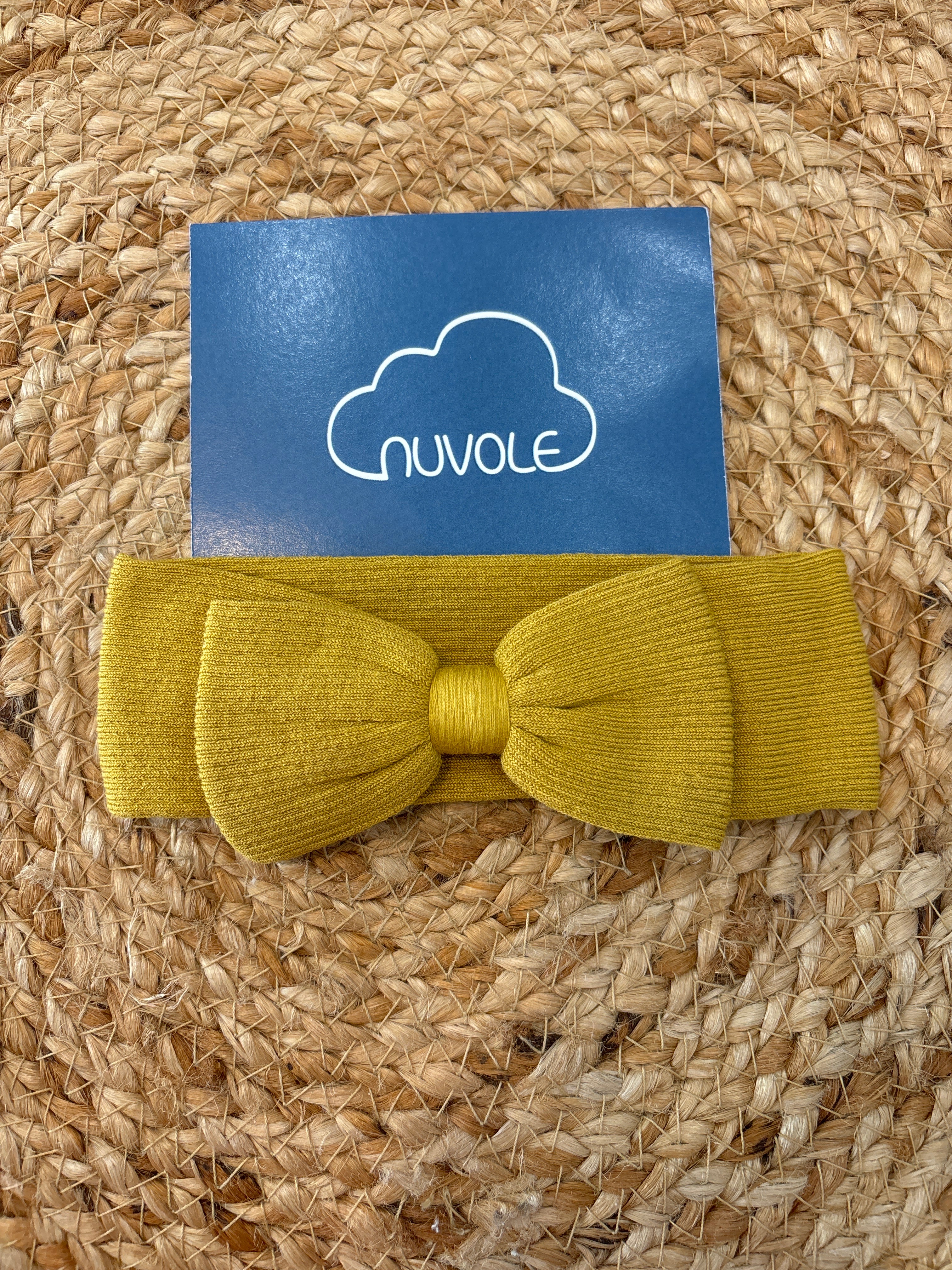 Morbida fascia in tessuto con finto fiocco annodato sul davanti. Ideale per proteggere le nostre piccole dal freddo senza rinunciare allo stile!