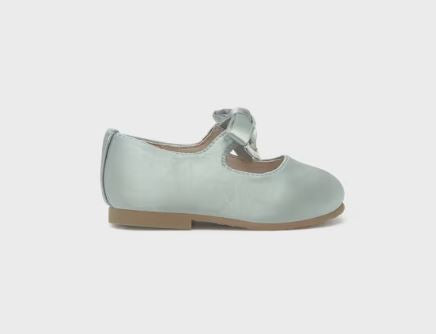 Ballerina in tela con fiocco e strappo il velcro. Suola antiscivolo e interno suola profumato