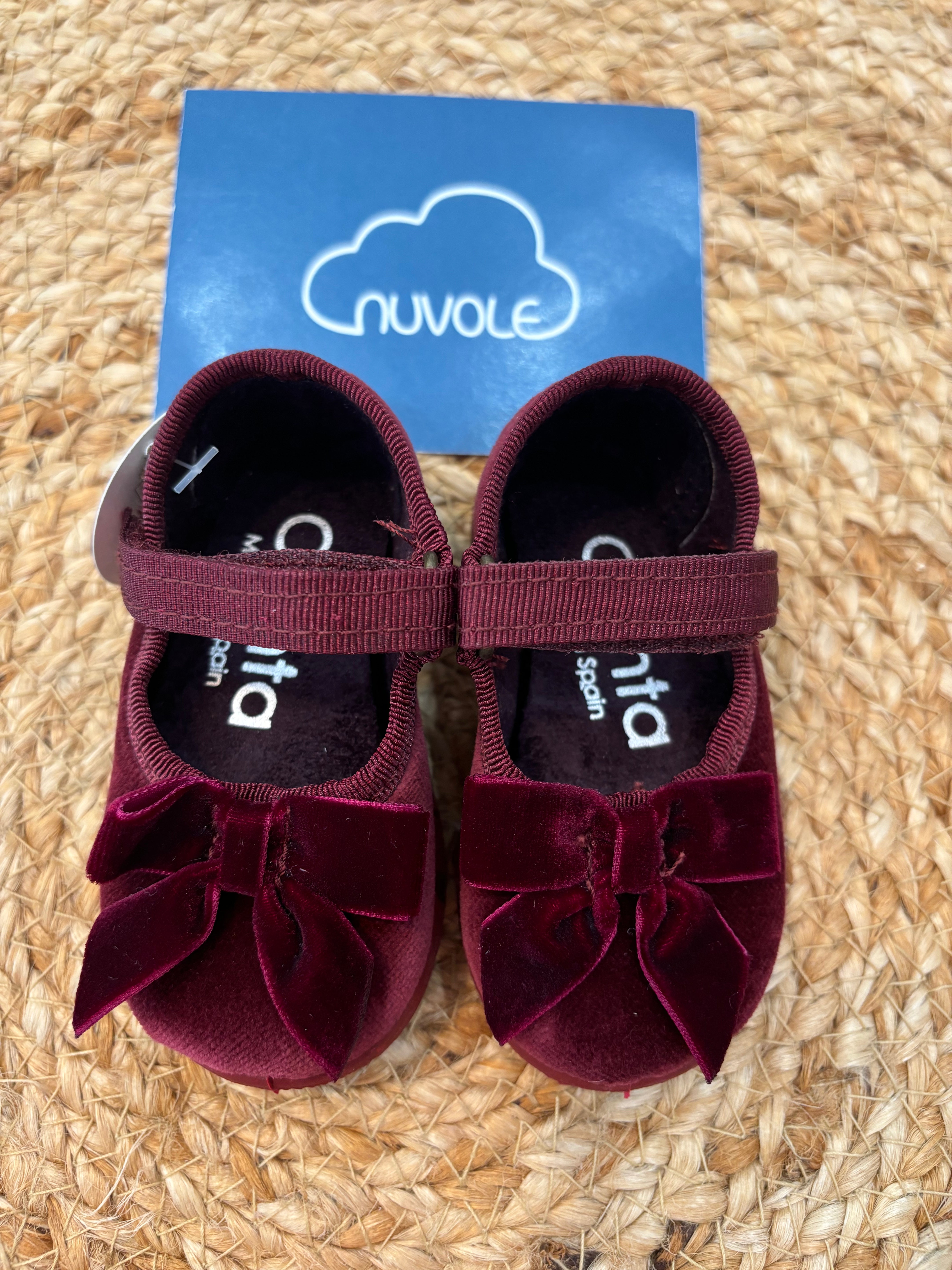 Ballerina in velluto blu con chiusura in velcro e suola in morbida gomma