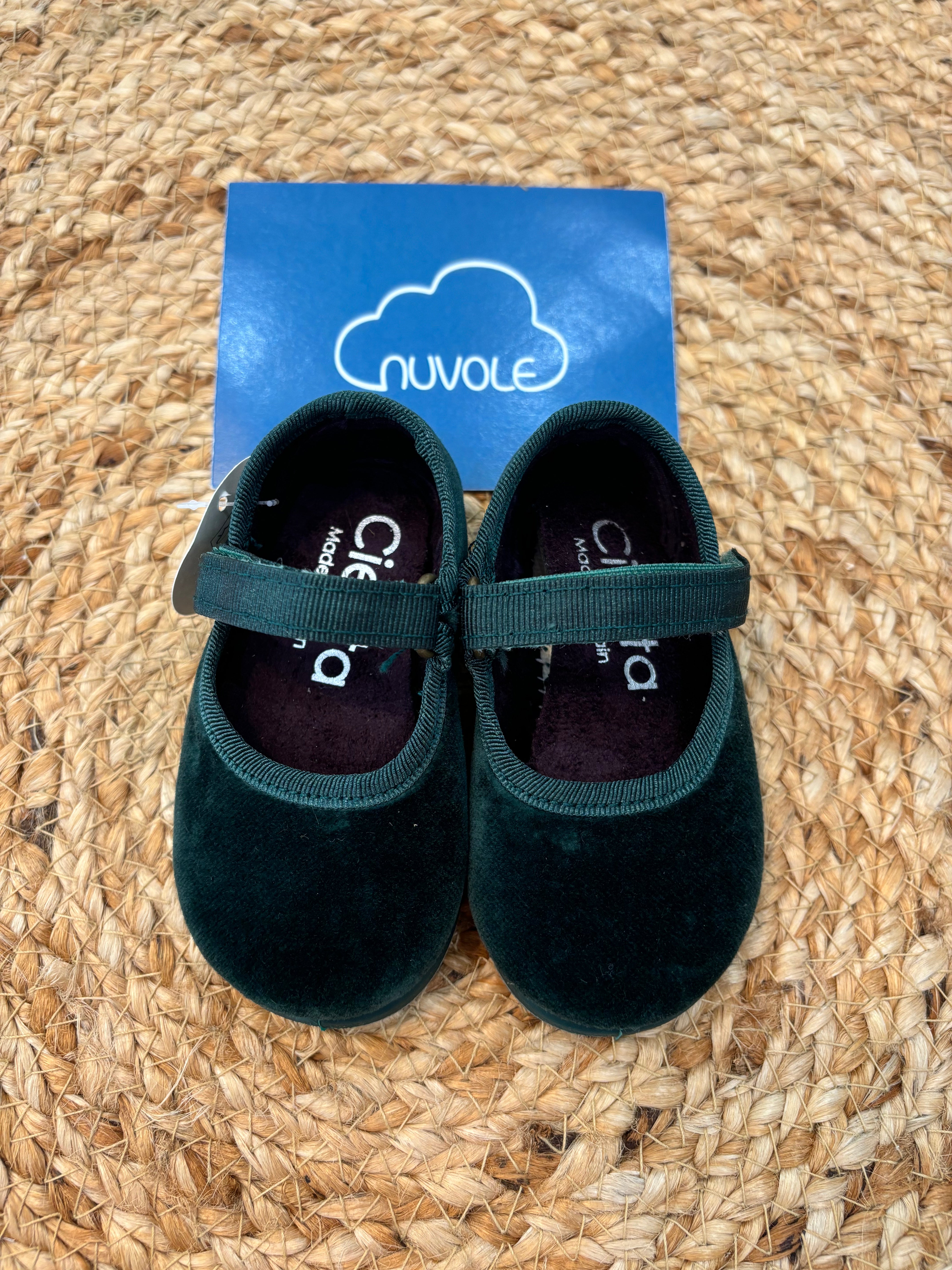 Ballerina in velluto grigio con chiusura in velcro e suola in morbida gomma