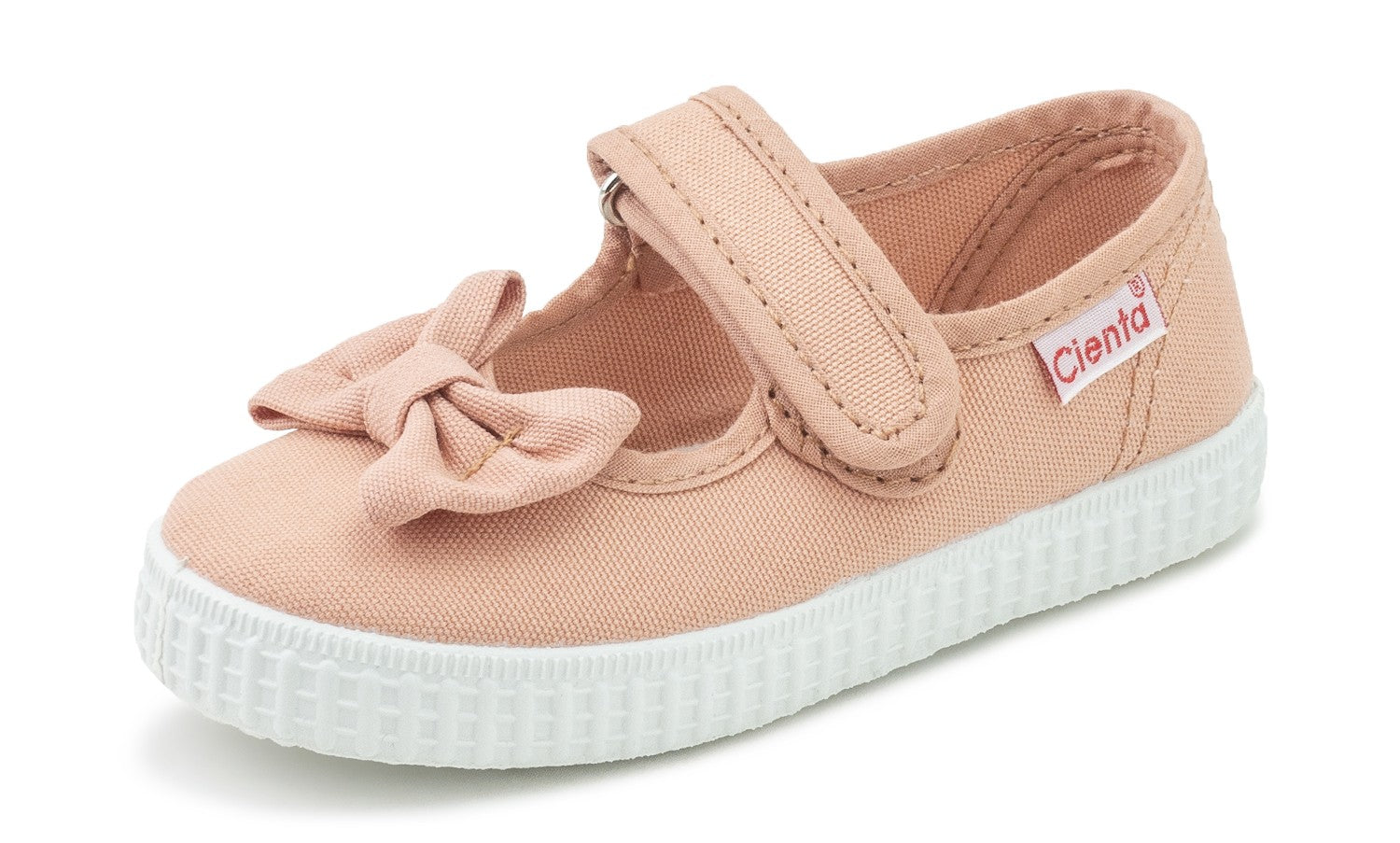 Ballerina in velluto marrone con chiusura in velcro e suola in morbida gomma