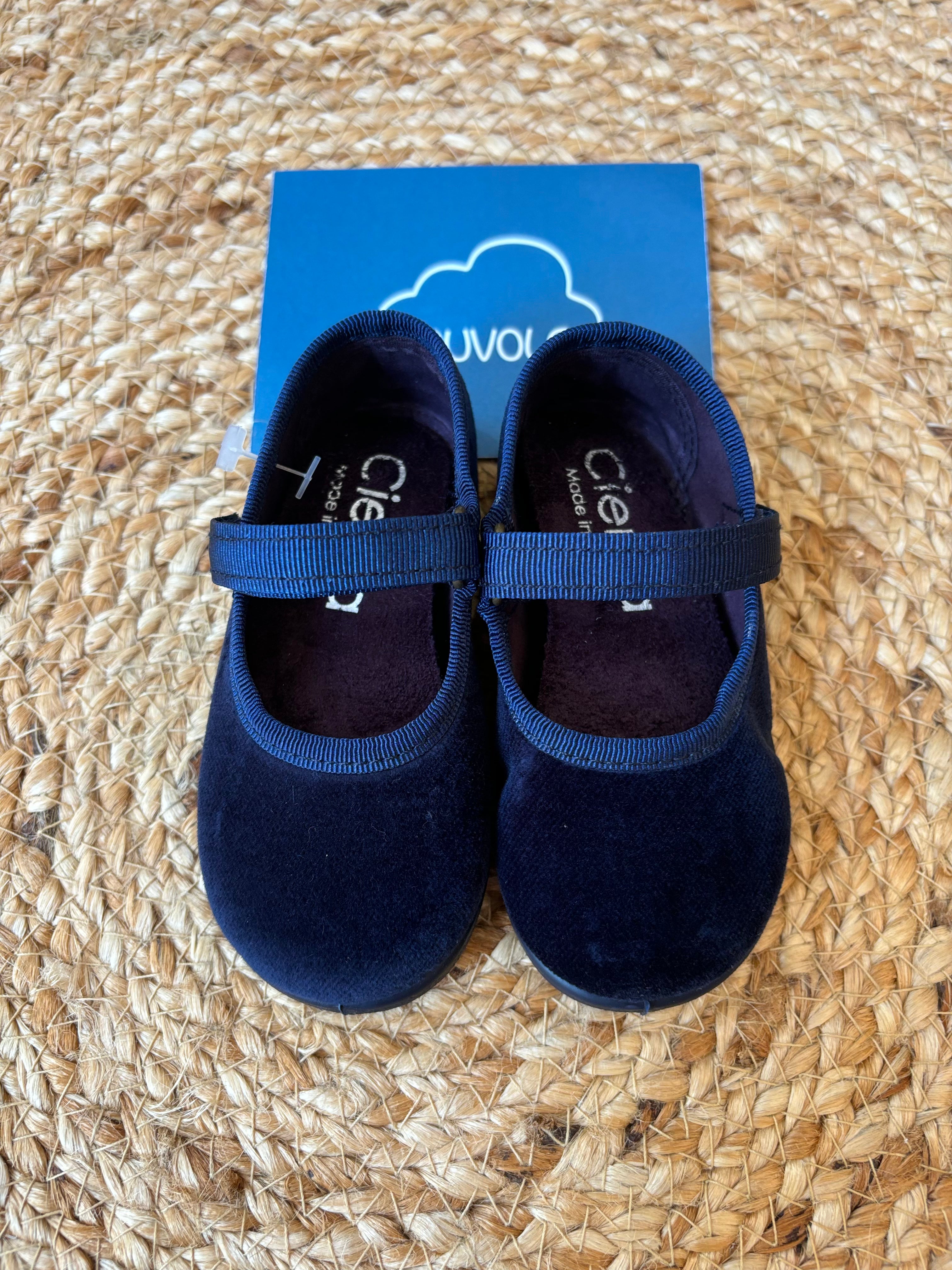 Ballerina in velluto verde con chiusura in velcro e suola in morbida gomma