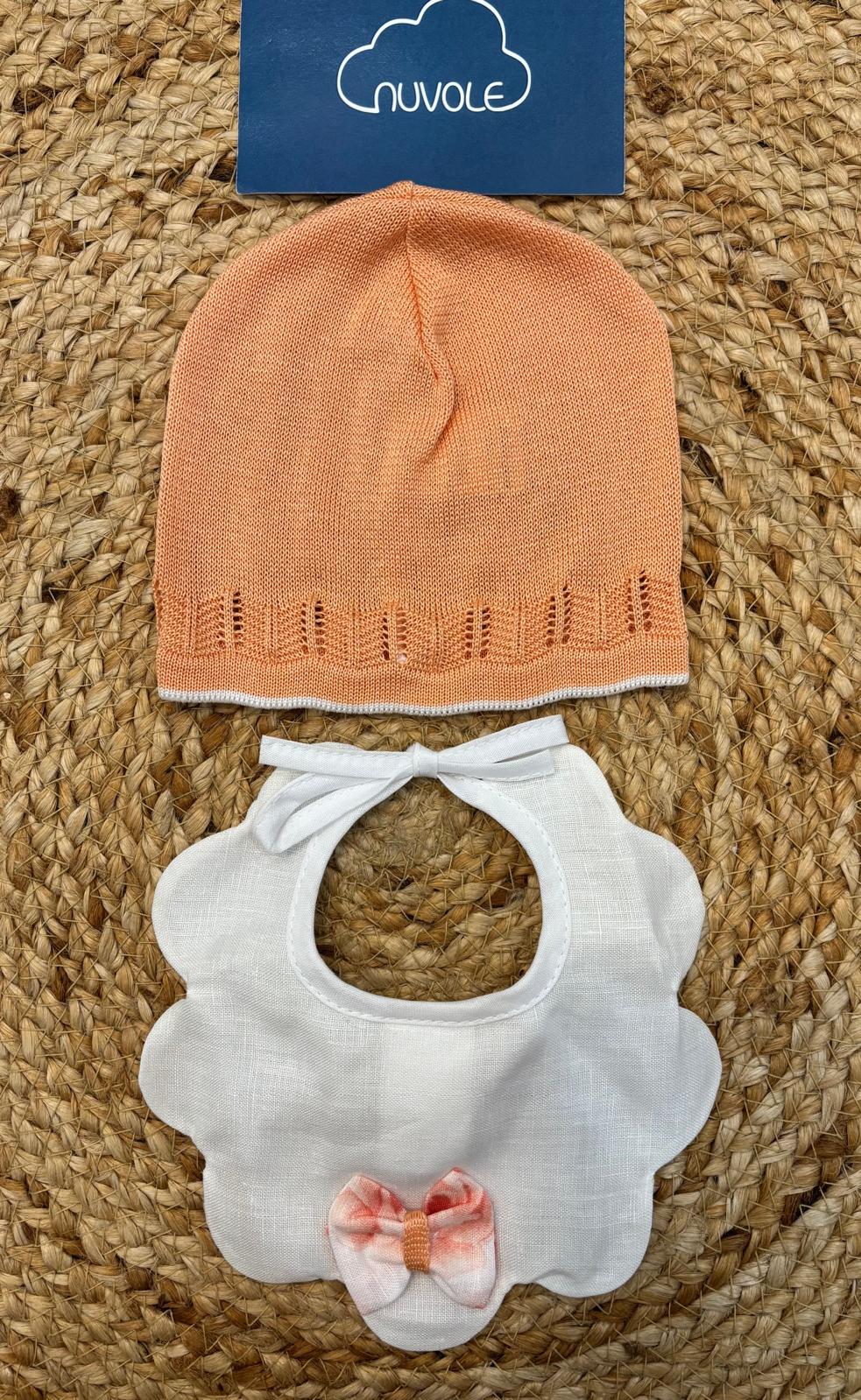 Bavetta in piquet di cotone con inserto in lino a quadretti