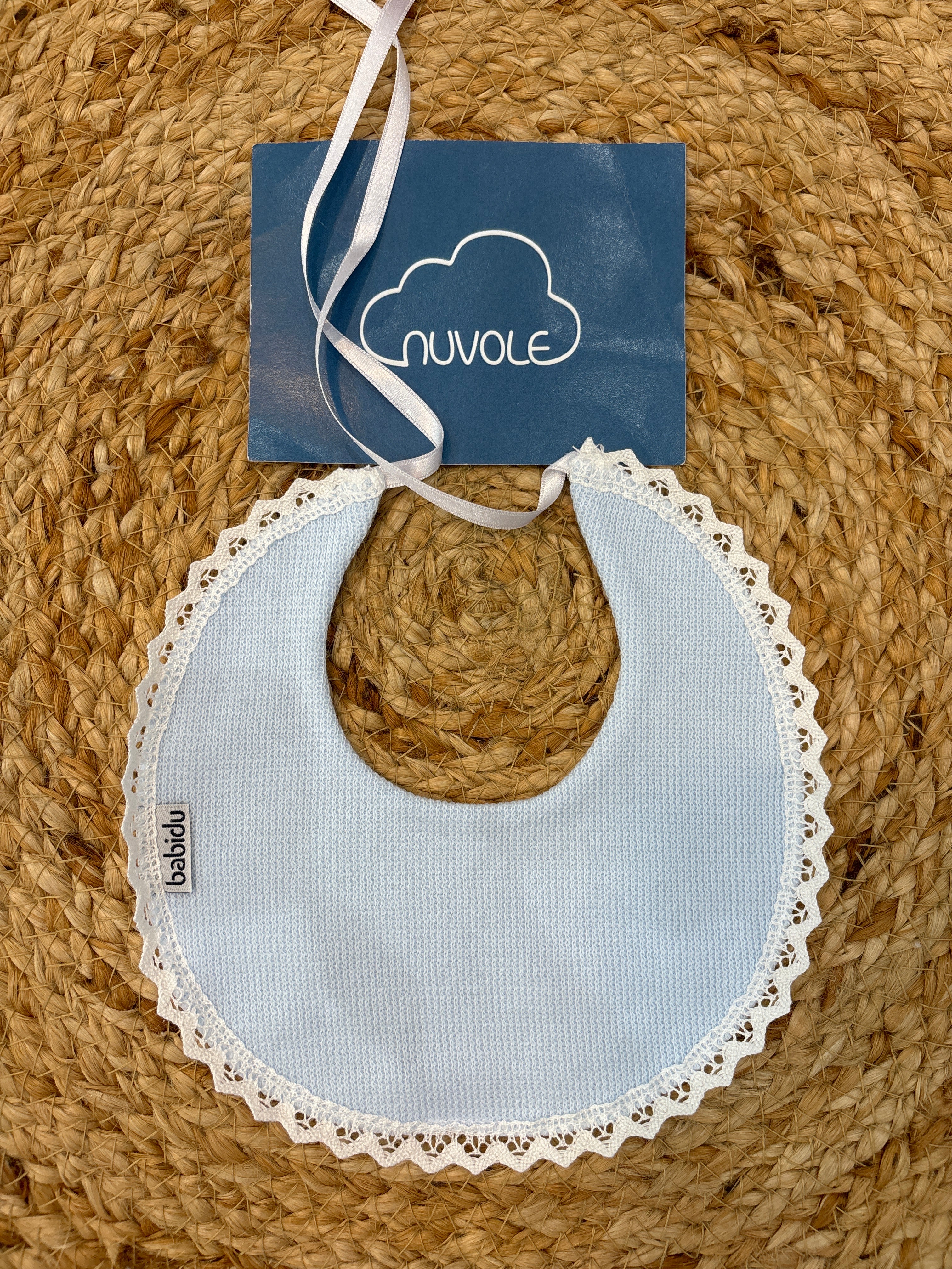 Bavetta in cotone lavorato effetto matelassè con smerlo panna e laccetti in raso