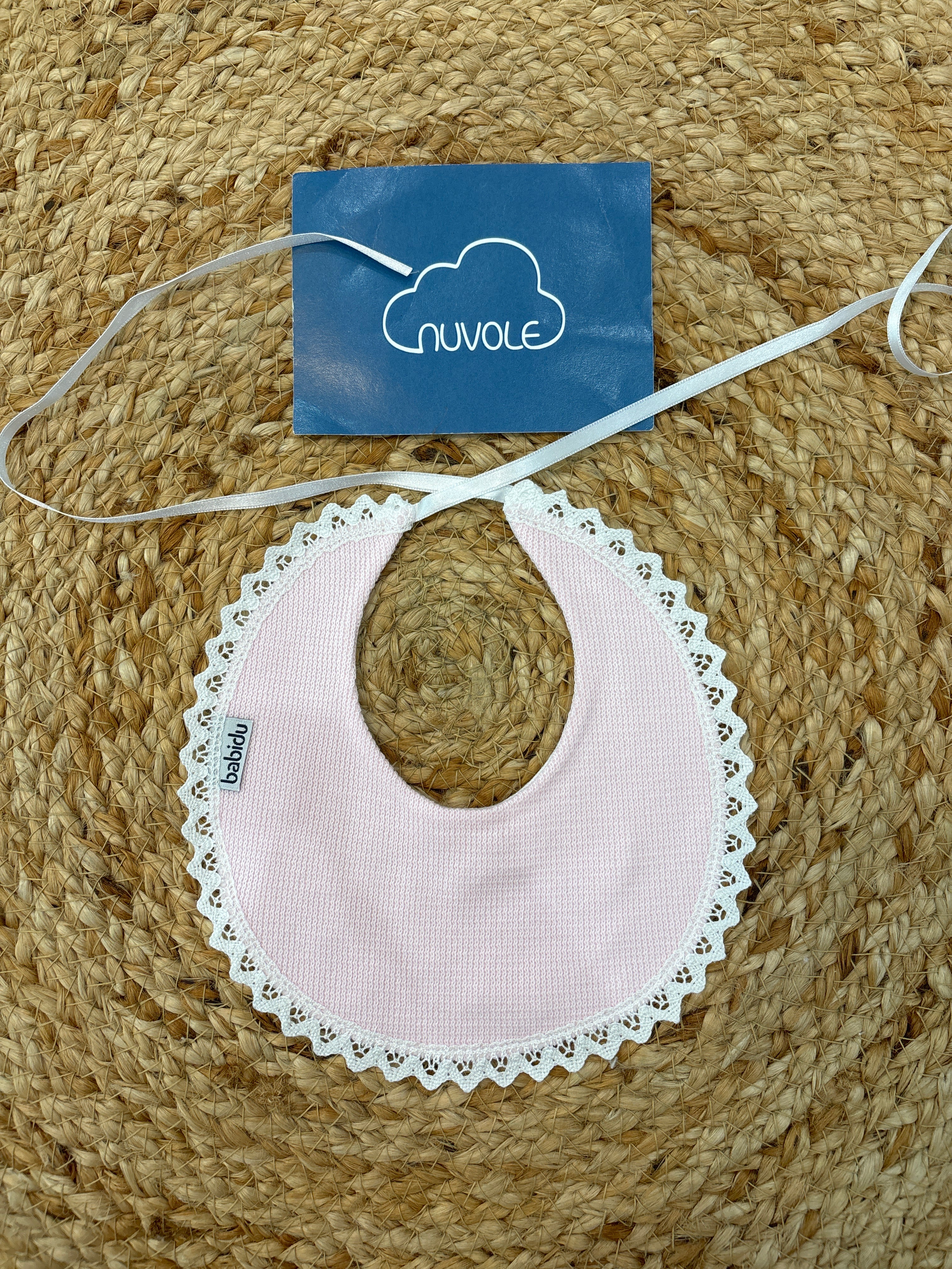 Bavetta in cotone lavorato con smerlo panna e laccetti in raso