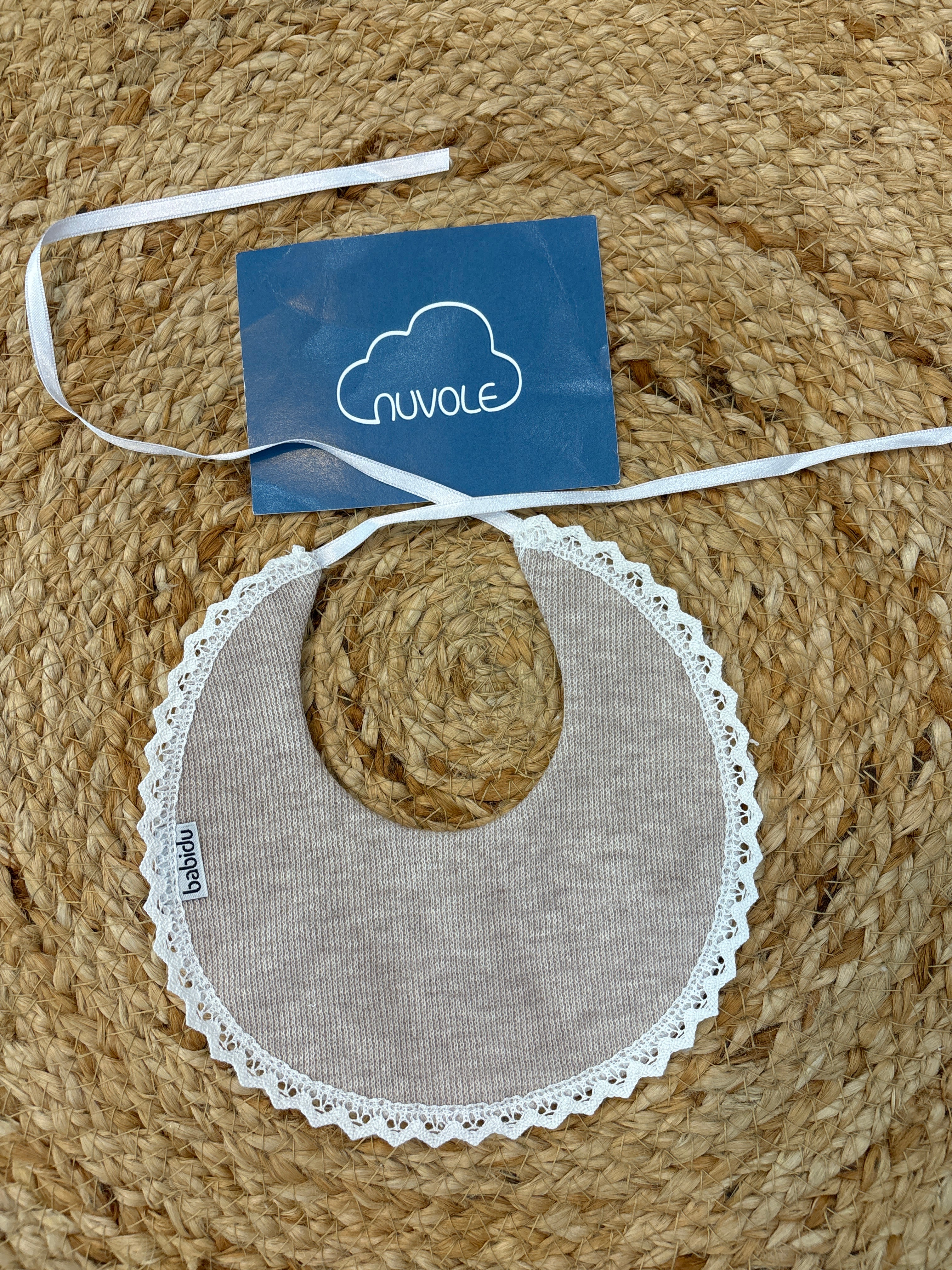 Bavetta in cotone lavorato con smerlo panna e laccetti in raso