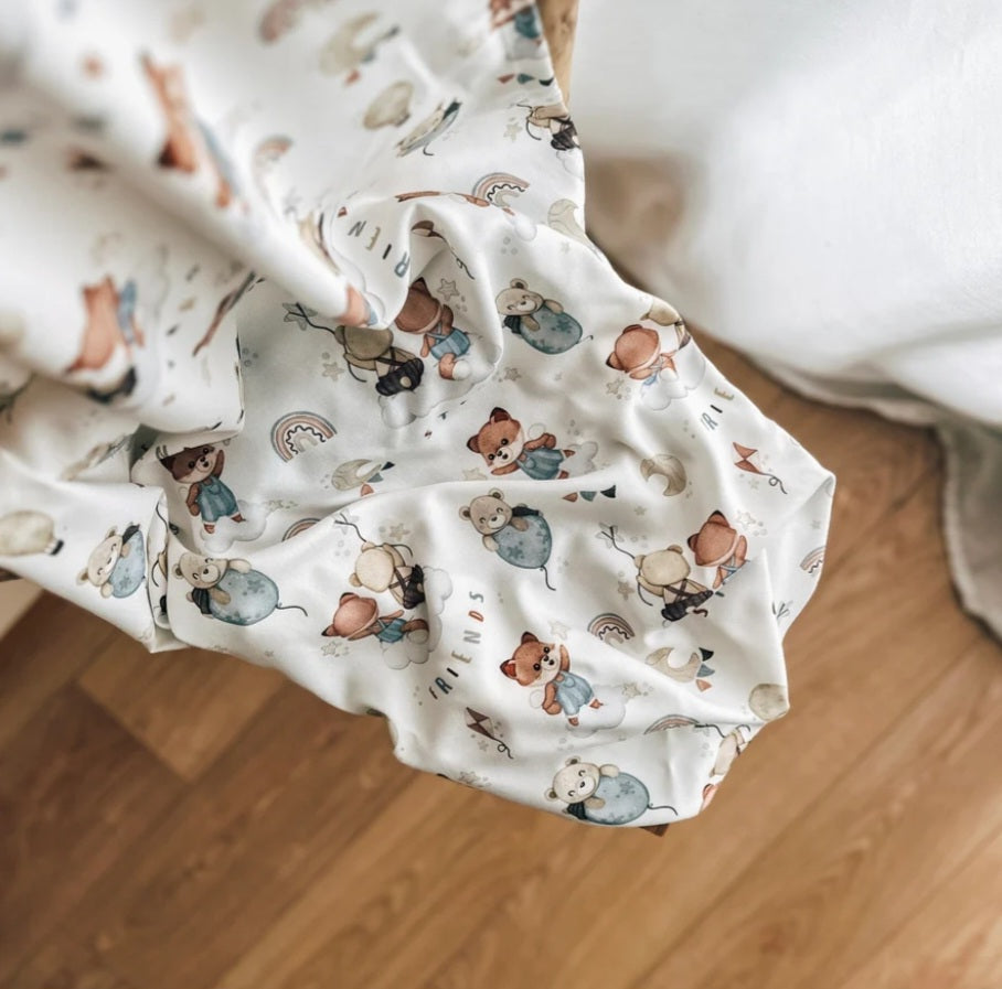 Confezione da 2 quadrotti in garza di cotone con bordatura merlettata e fiocco in raso bianco