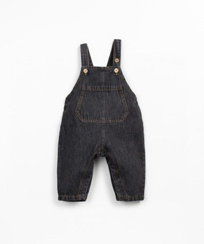 Salopette in denim realizzata in tessuto di cotone, nel colore denim scuro. È un modello con spalline regolabili con bottoni in cocco e tasca frontale.