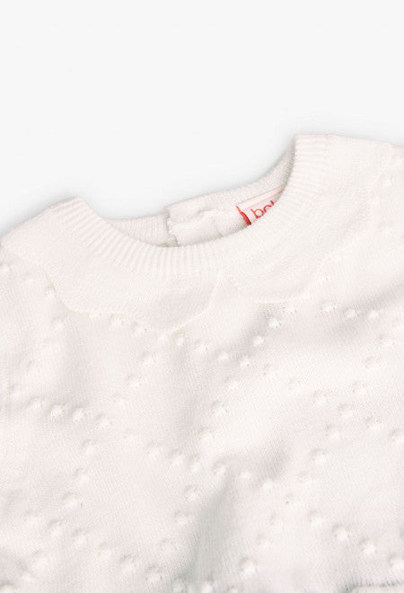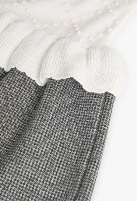 Abito combinato a maglia per bambina, ideale per l'inverno. Il tessuto a maglia e le maniche lunghe garantiscono calore e comfort. Il design presenta un motivo pied-de-poule che aggiunge un tocco classico ed elegante. Il colletto a sezioni aggiunge un dettaglio distintivo. Il colore bianco dell'abito lo rende versatile da abbinare. Questo abito è la scelta perfetta per tenere il vostro piccolo al caldo e alla moda durante i mesi più freddi.