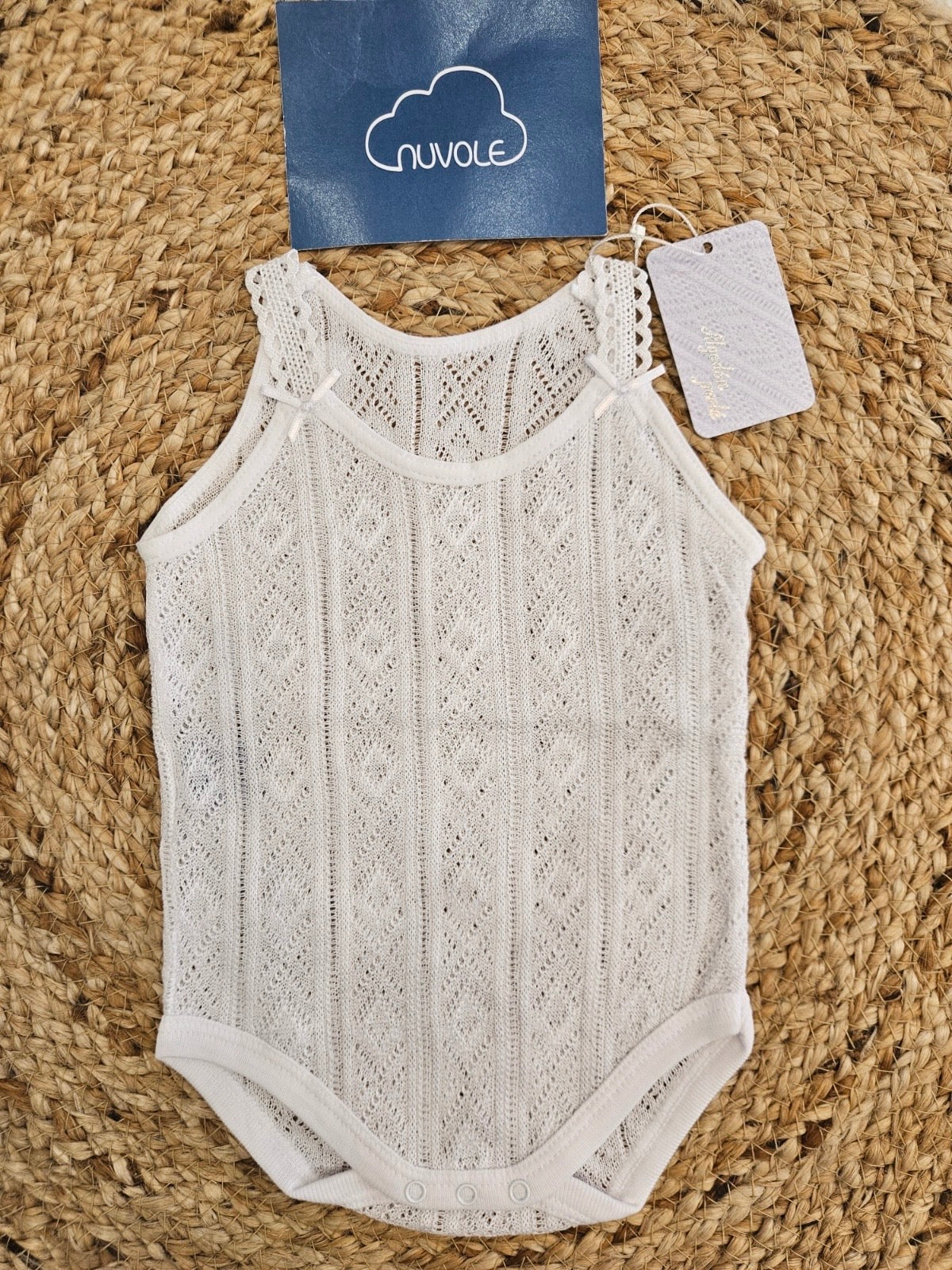 Body bretella in cotone con orsetti traforati e bottoncini sotto per il cambio del pannolino