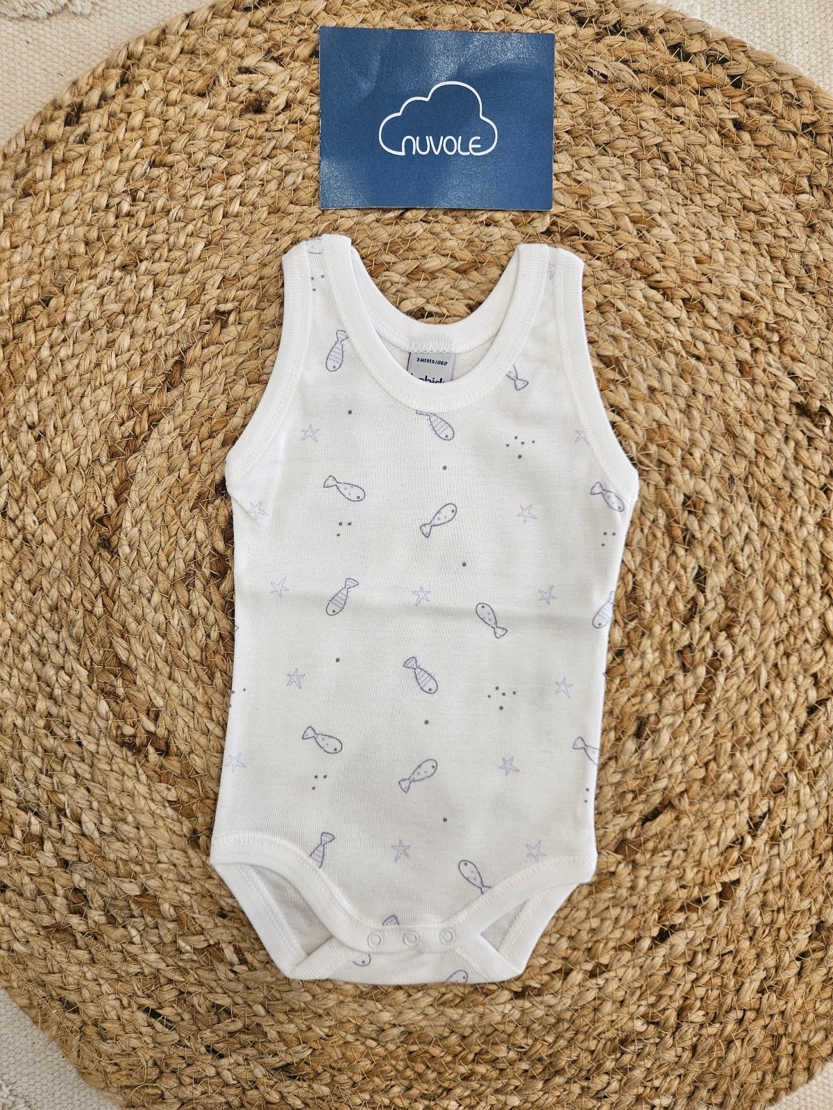 Body smanicato in filo di scozia con bottoncini sotto per il cambio del pannolino