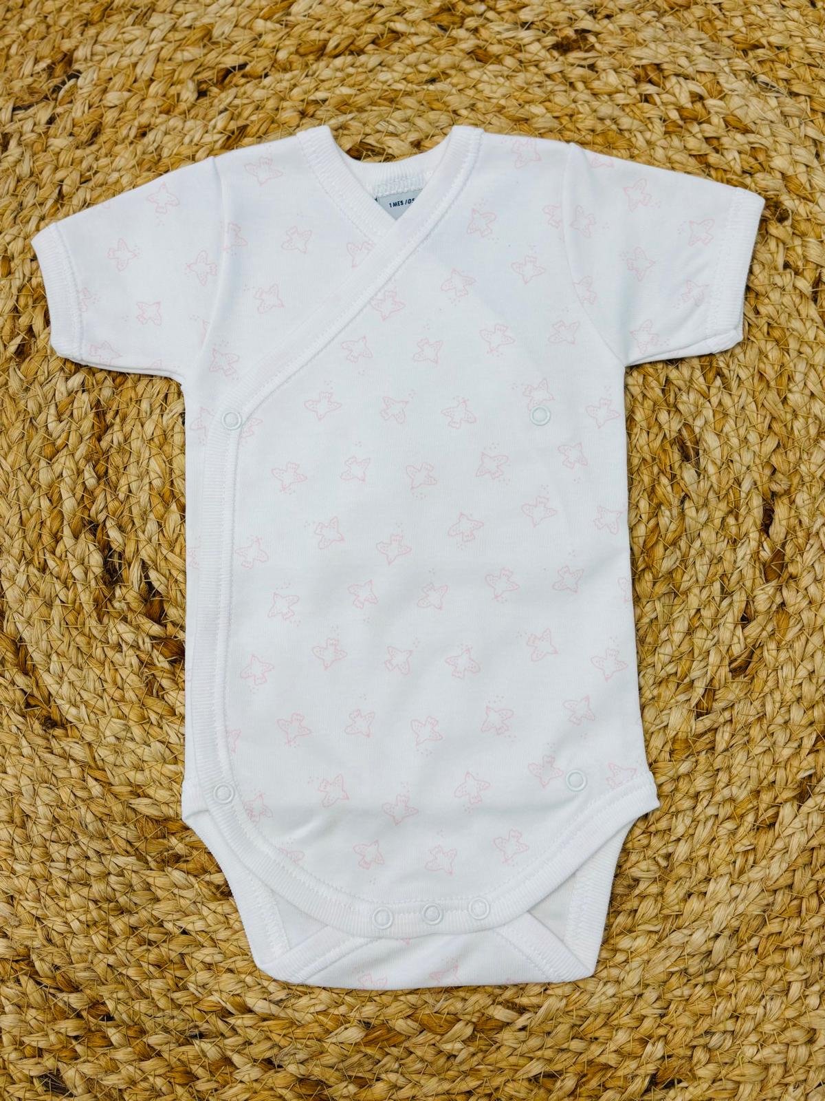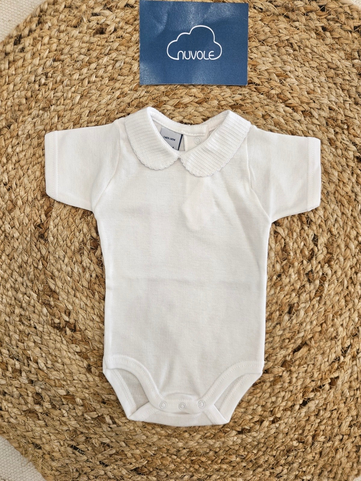 Body mezza manica con colletto ricamato, abbottonatura sul retro e pratici bottoncini sotto per il cambio del pannolino