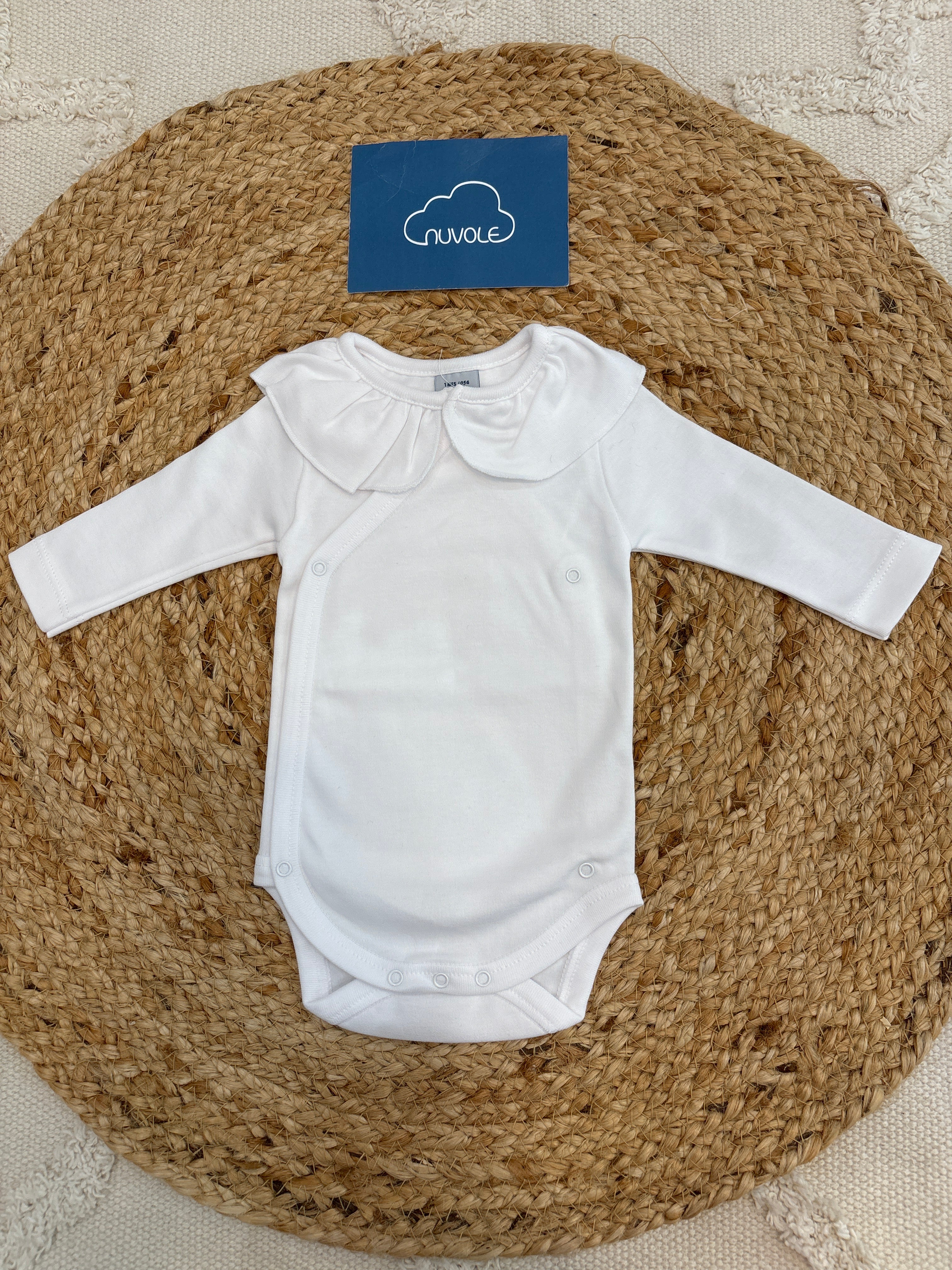Body manica lunga in caldo cotone, con abbottonatura antipanico e delicato pizzo su polsini e scollatura