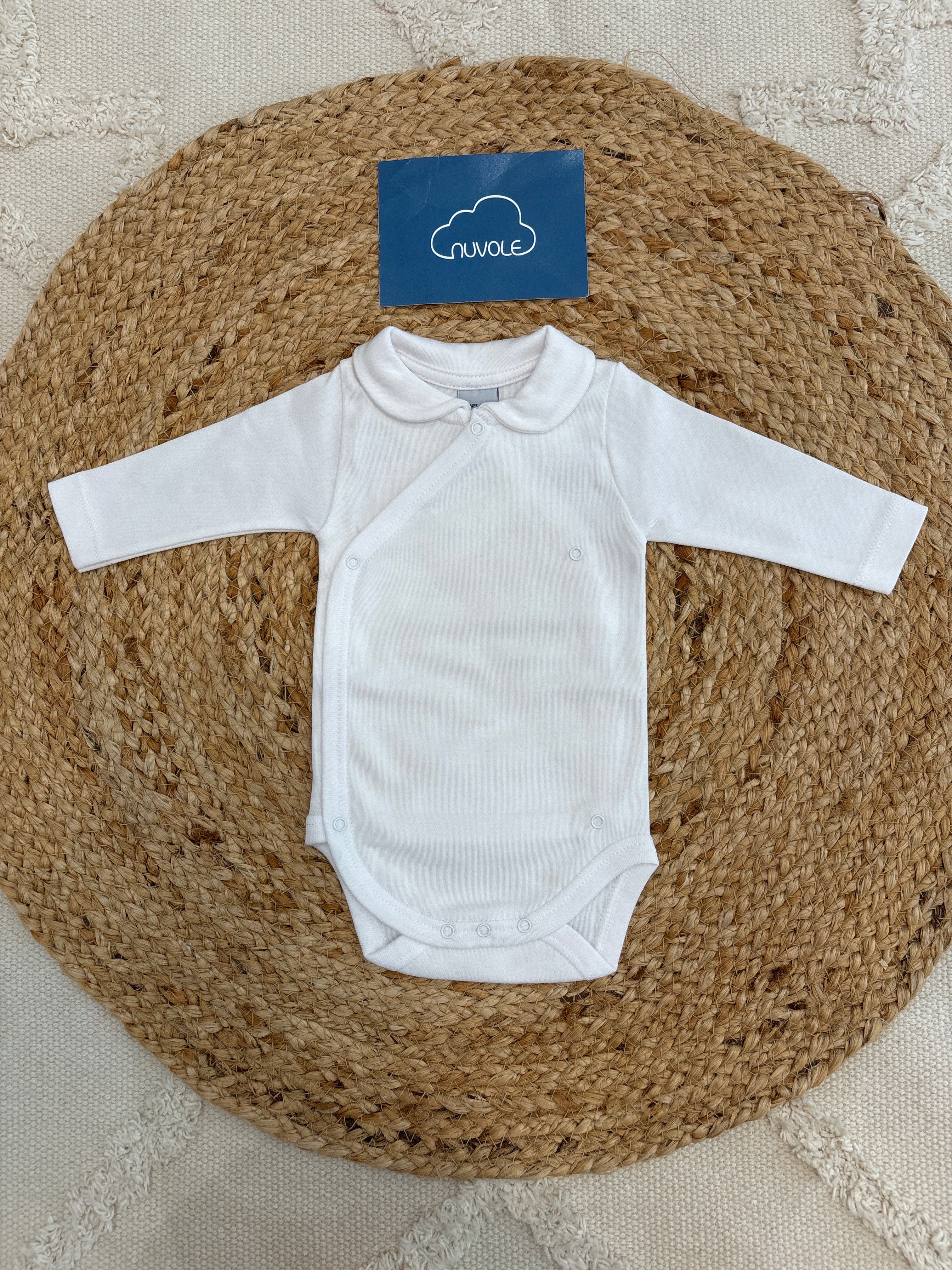 Body manica lunga in caldo cotone, con abbottonatura antipanico e delicato volant al collo e ai polsini