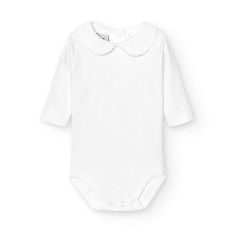 Body in caldo cotone con colletto e polsini volant ricamati colore bordeaux