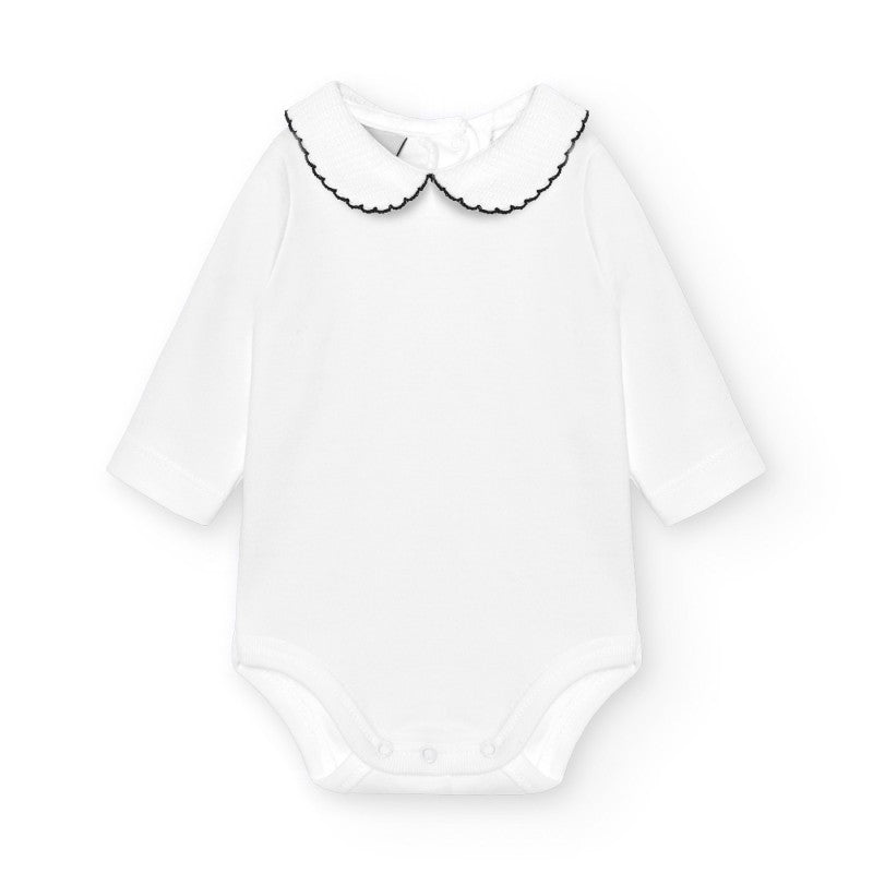 Body in caldo cotone con colletto in piquet e ricamo colore bianco