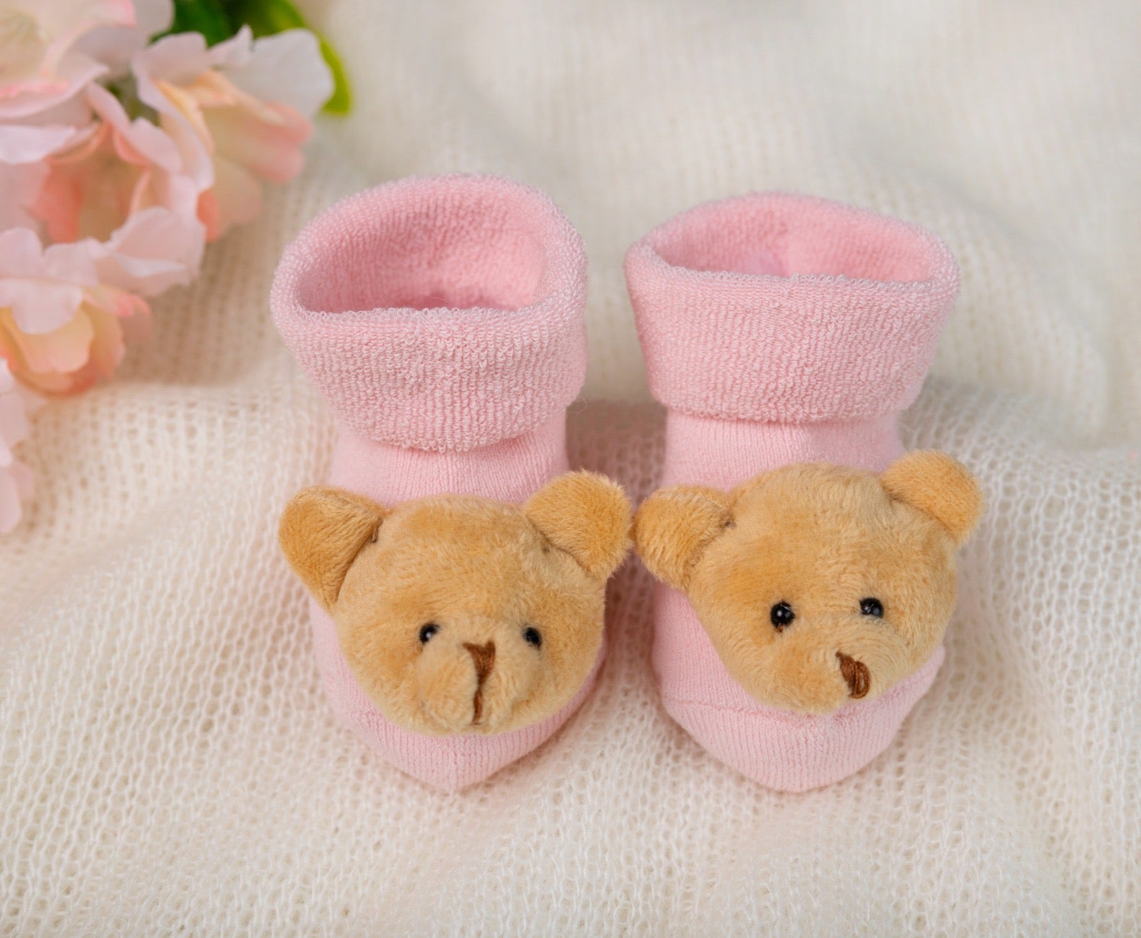 Calzini bassi effetto scarpina con orsacchiotto in tessuto applicato sul davanti