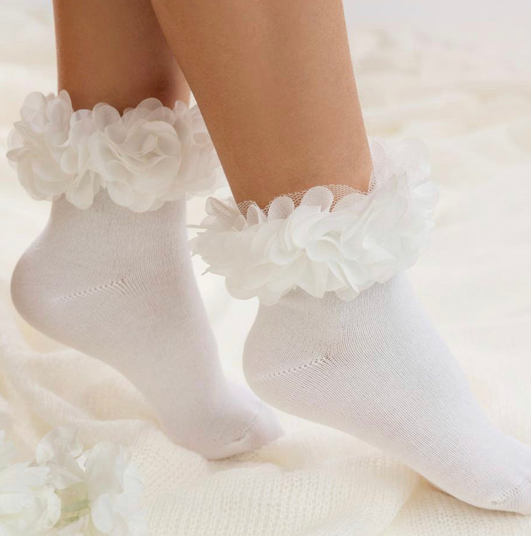 Elegante calzino corto in cotone con fiocco laterale in organza