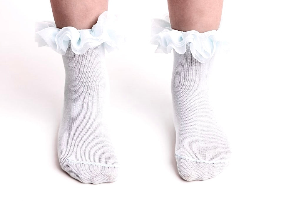 Calzino corto in cotone con fiocco plissettato in tulle e perle applicate
