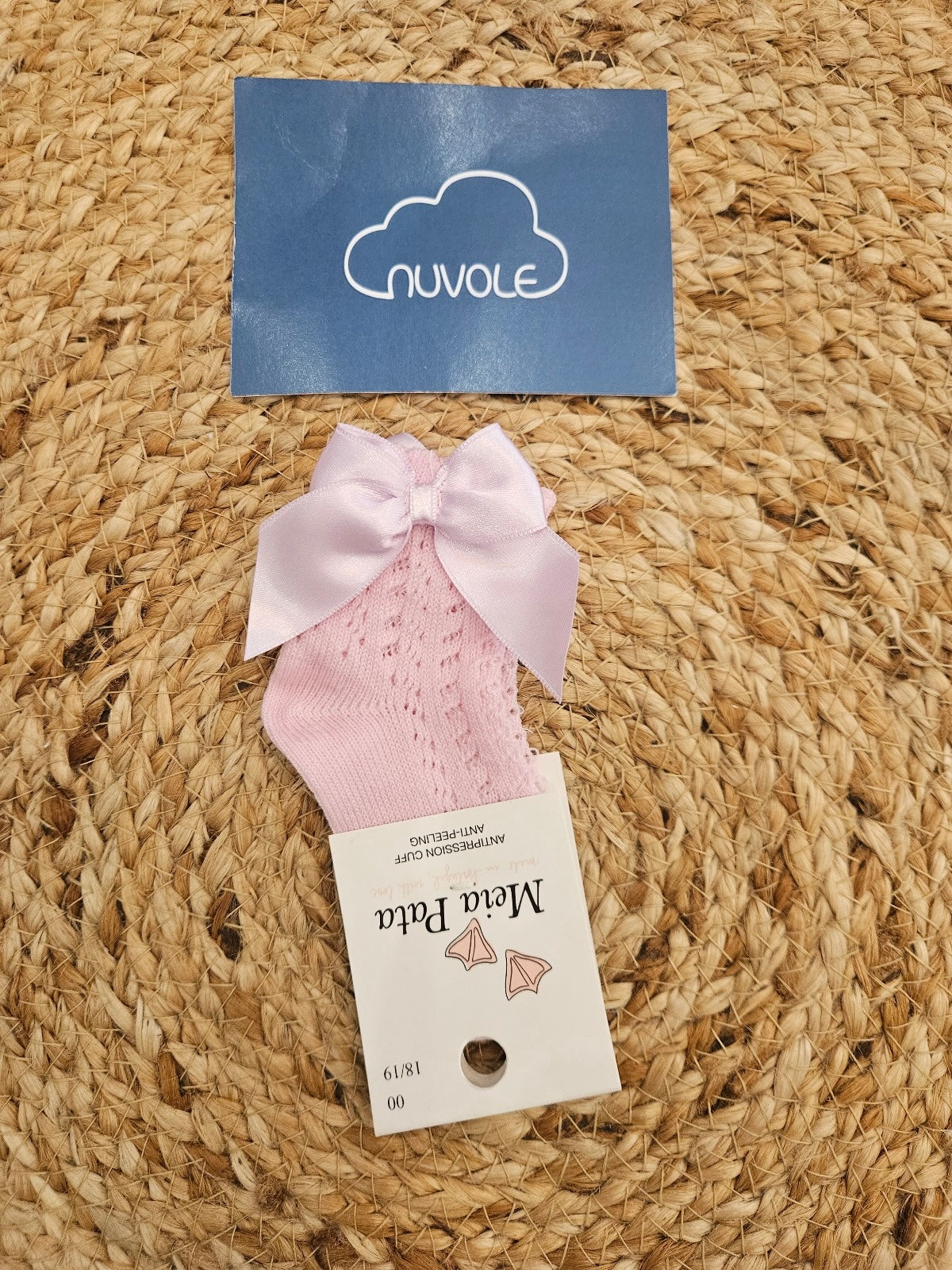 Calzino corto traforato in cotone, con fiocco di raso in tono