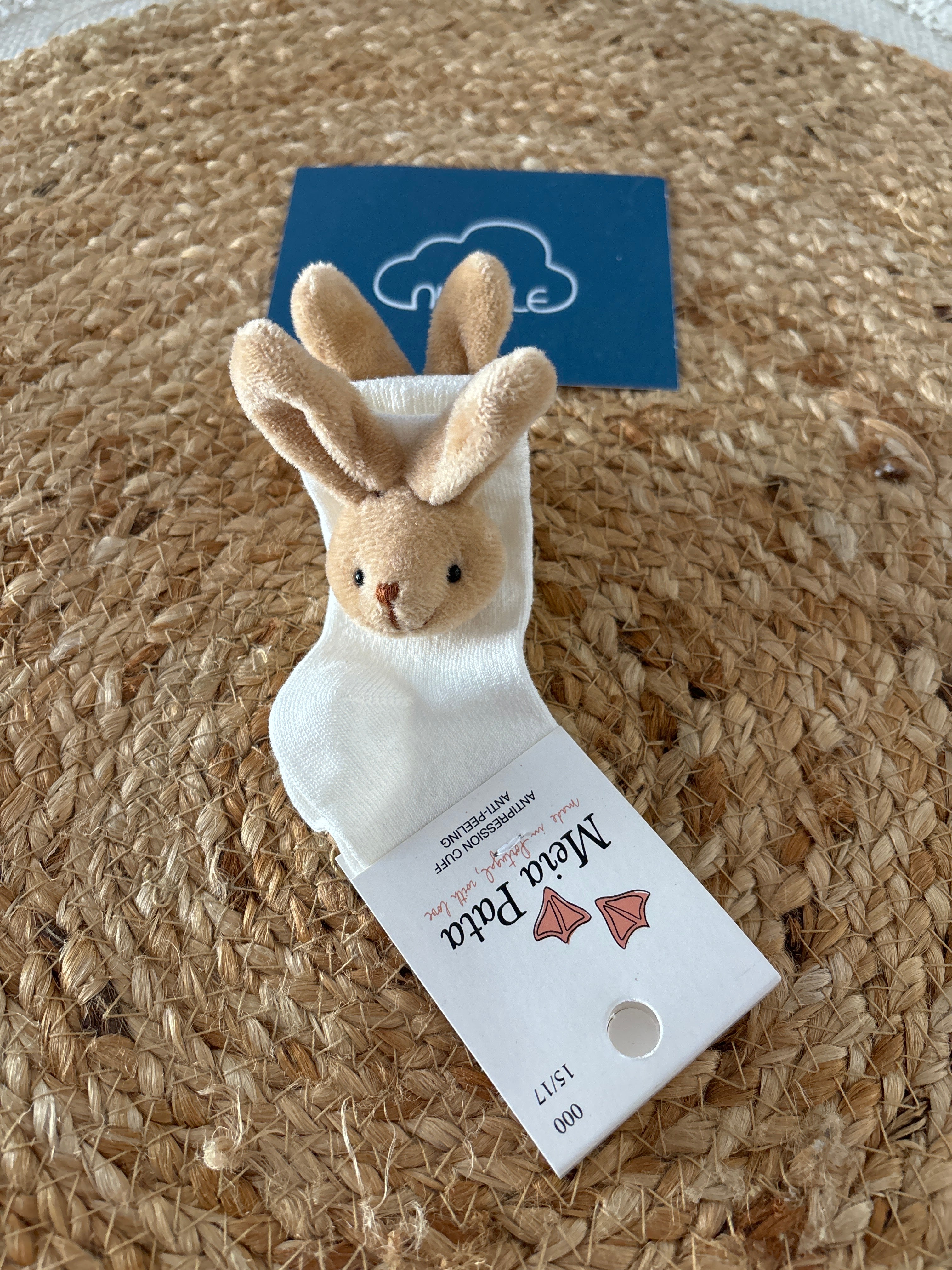 Calzini in cotone monocolore, orlo elasticizzato a costine e renna in tessuto applicato sul lato superiore