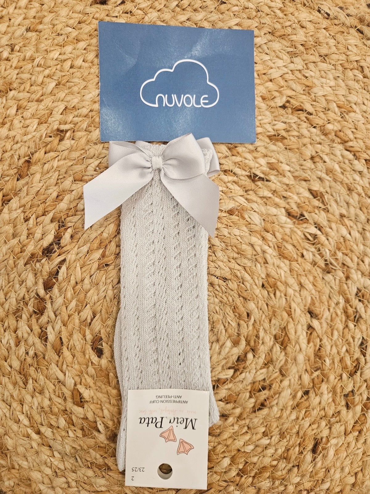 Calzino lungo in filo di scozia traforato con fiocco in raso
