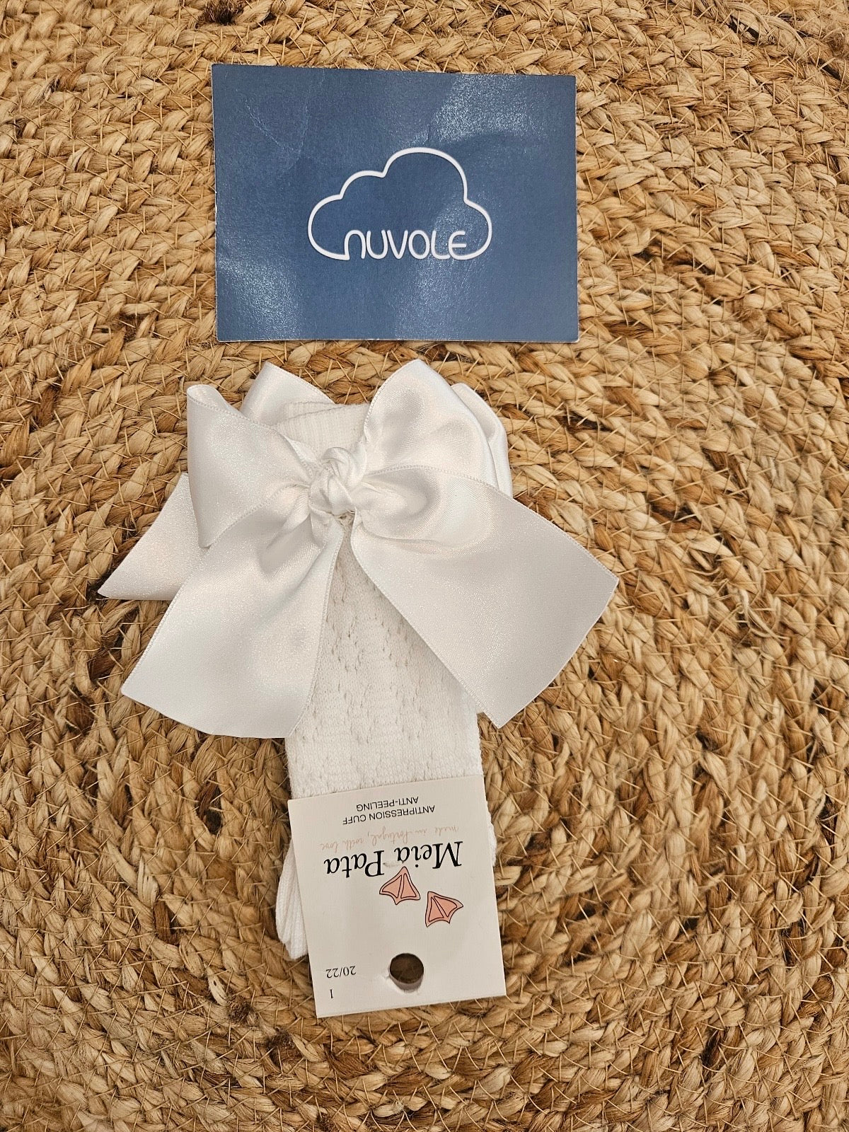 Calzino lungo in filo di scozia traforato con fiocco in raso