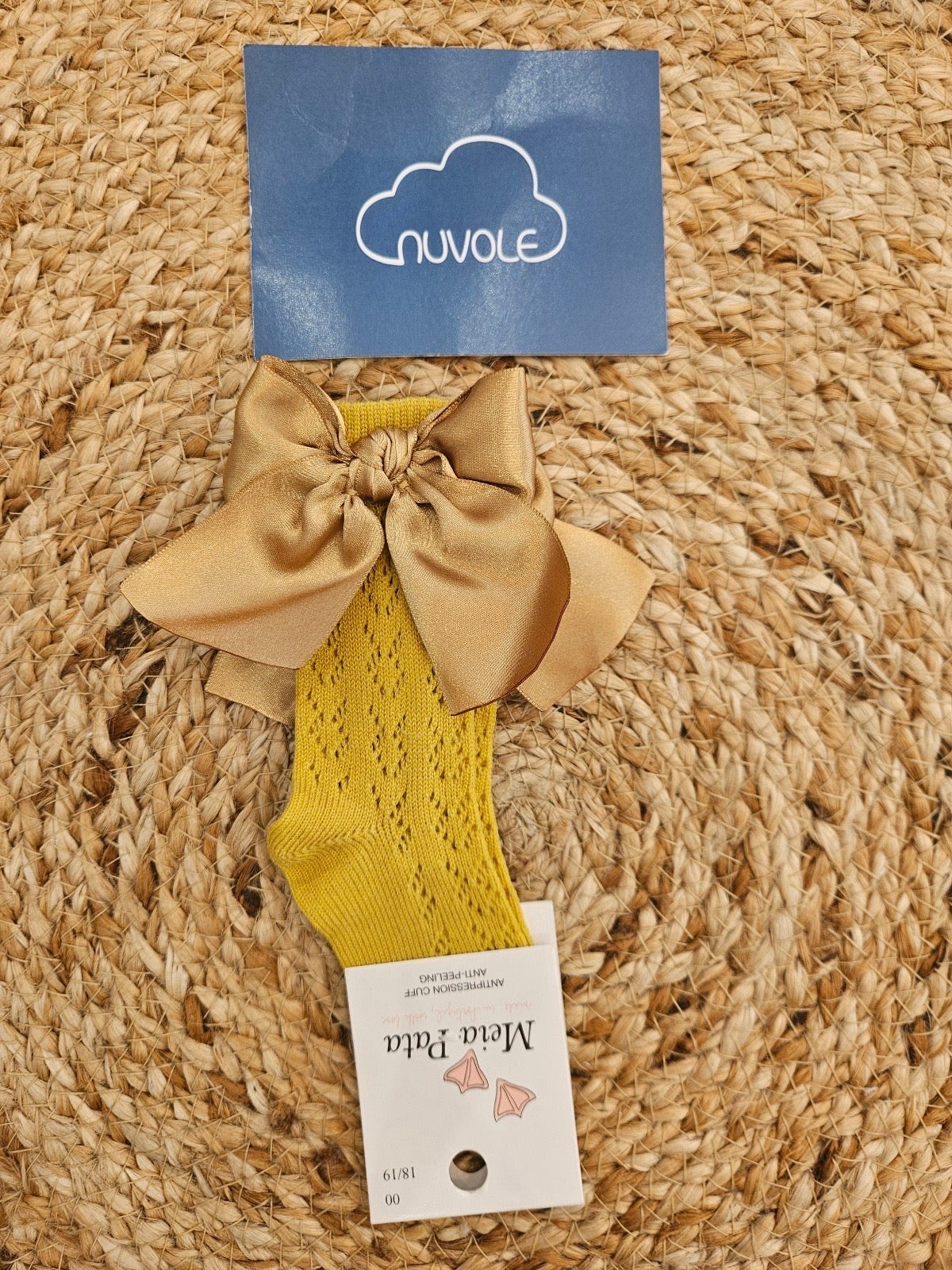 Calzino lungo in filo di scozia traforato con fiocco in tulle
