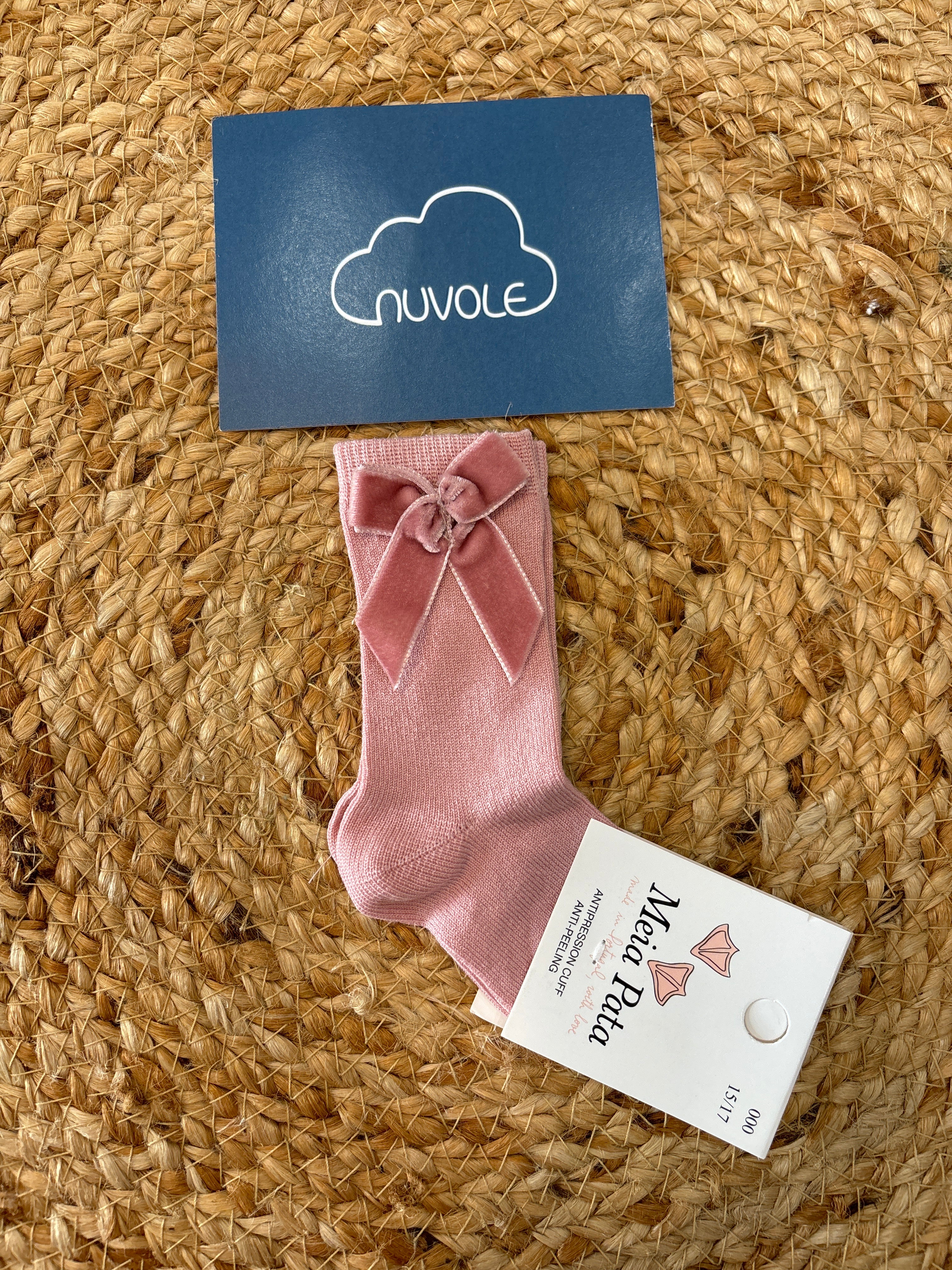 Calzini in cotone rigato monocolore, orlo elasticizzato a costine e pompon