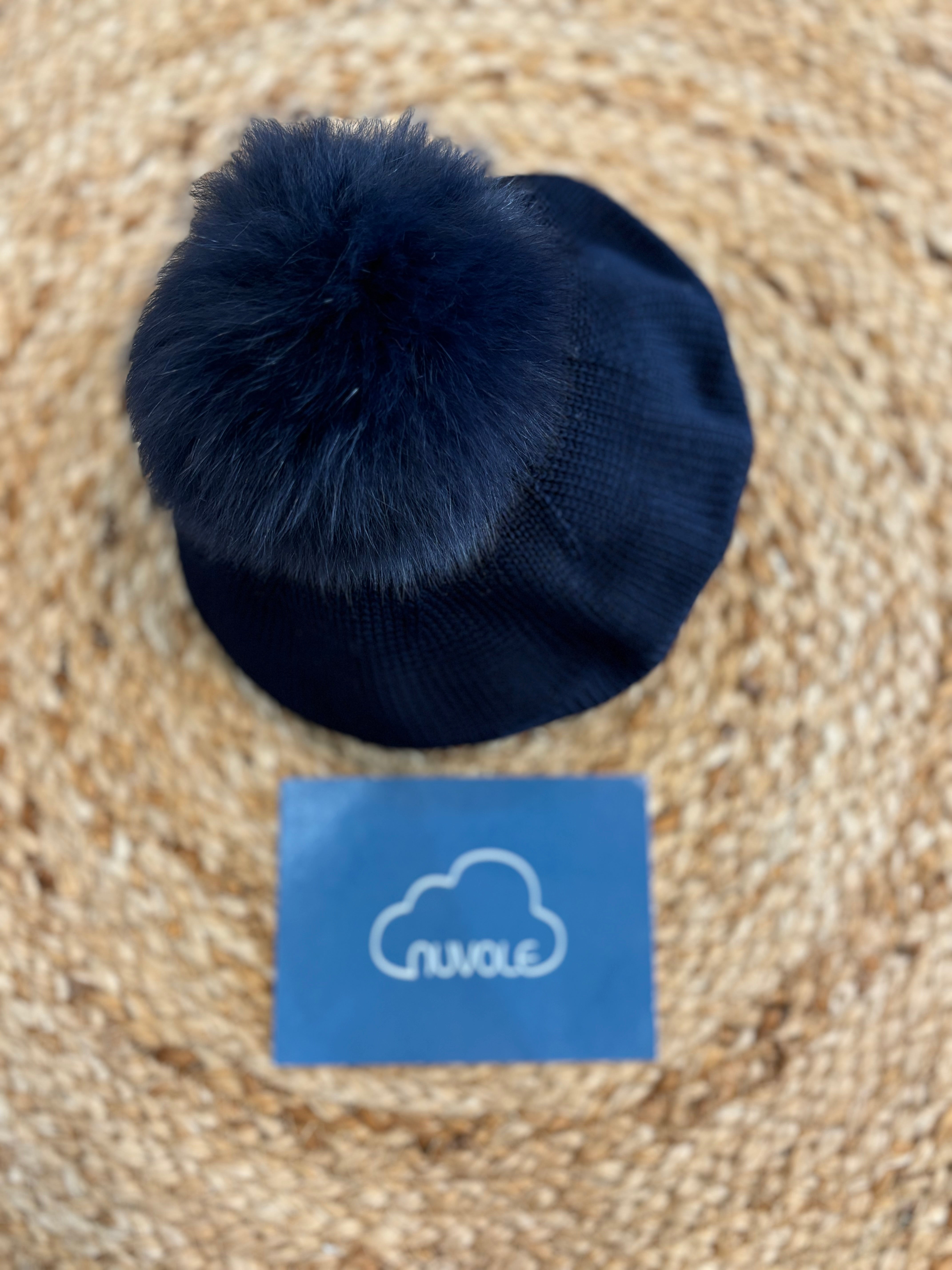 Basco in lana con pompon in volpe
