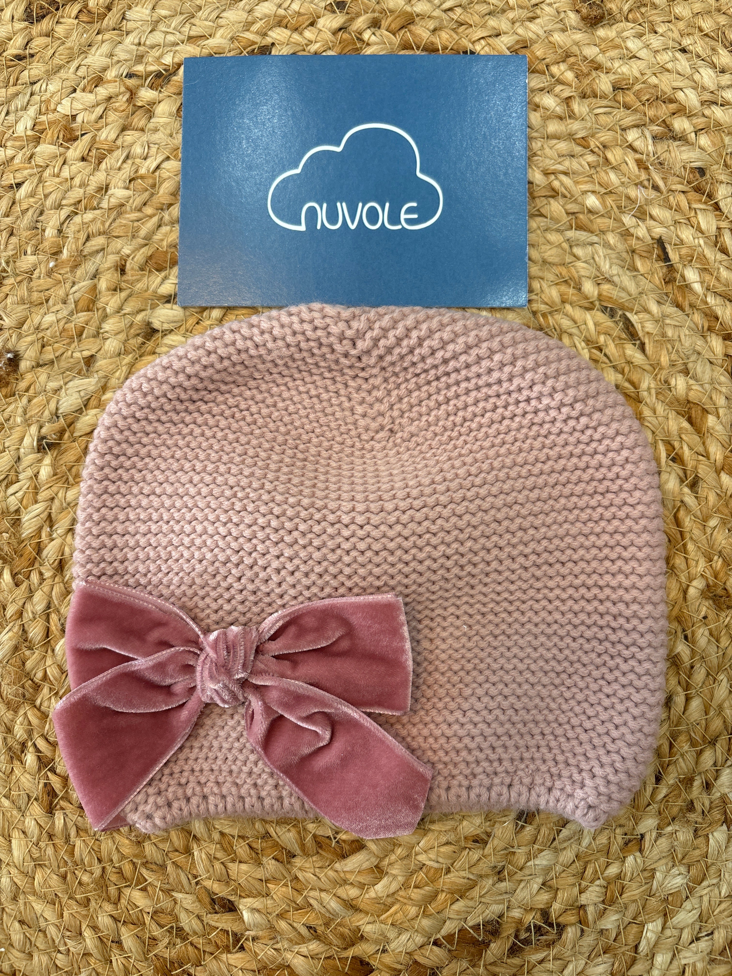 Cappello con fiocco in velluto ivory
