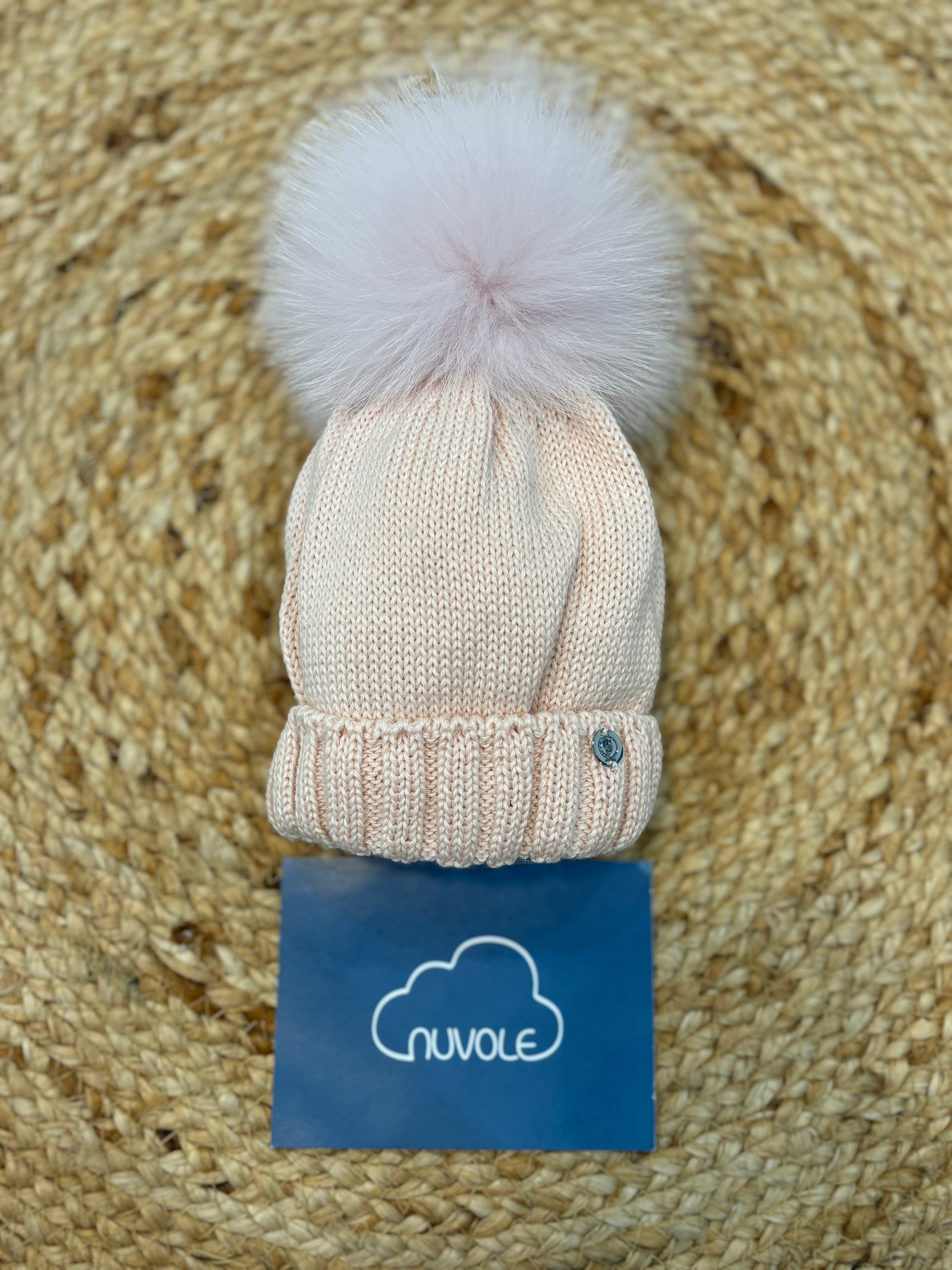 Cappello con pompon in volpe cielo