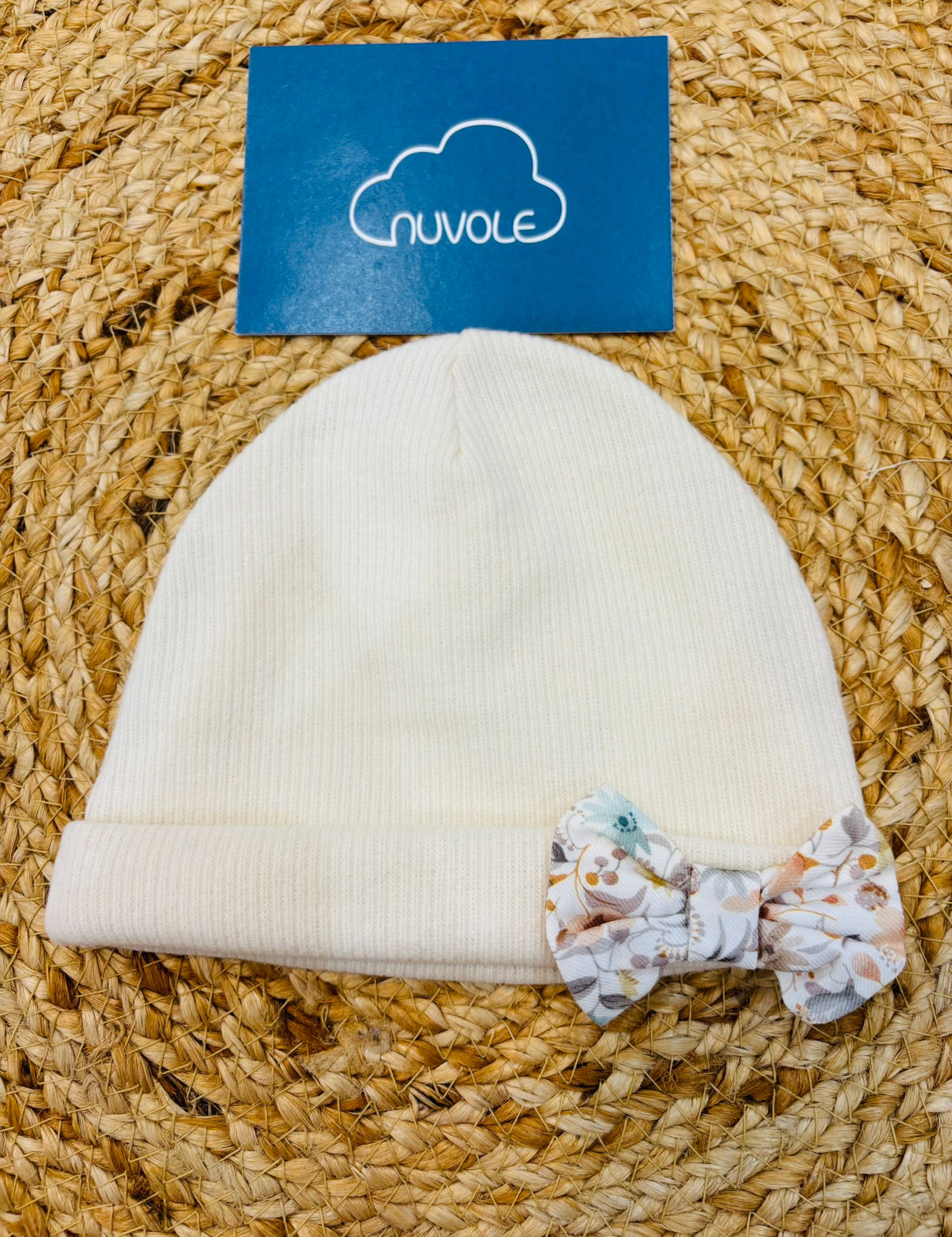 Romantico e morbidissimo cappello in caldo cotone rosa antico con volant in fantasia.