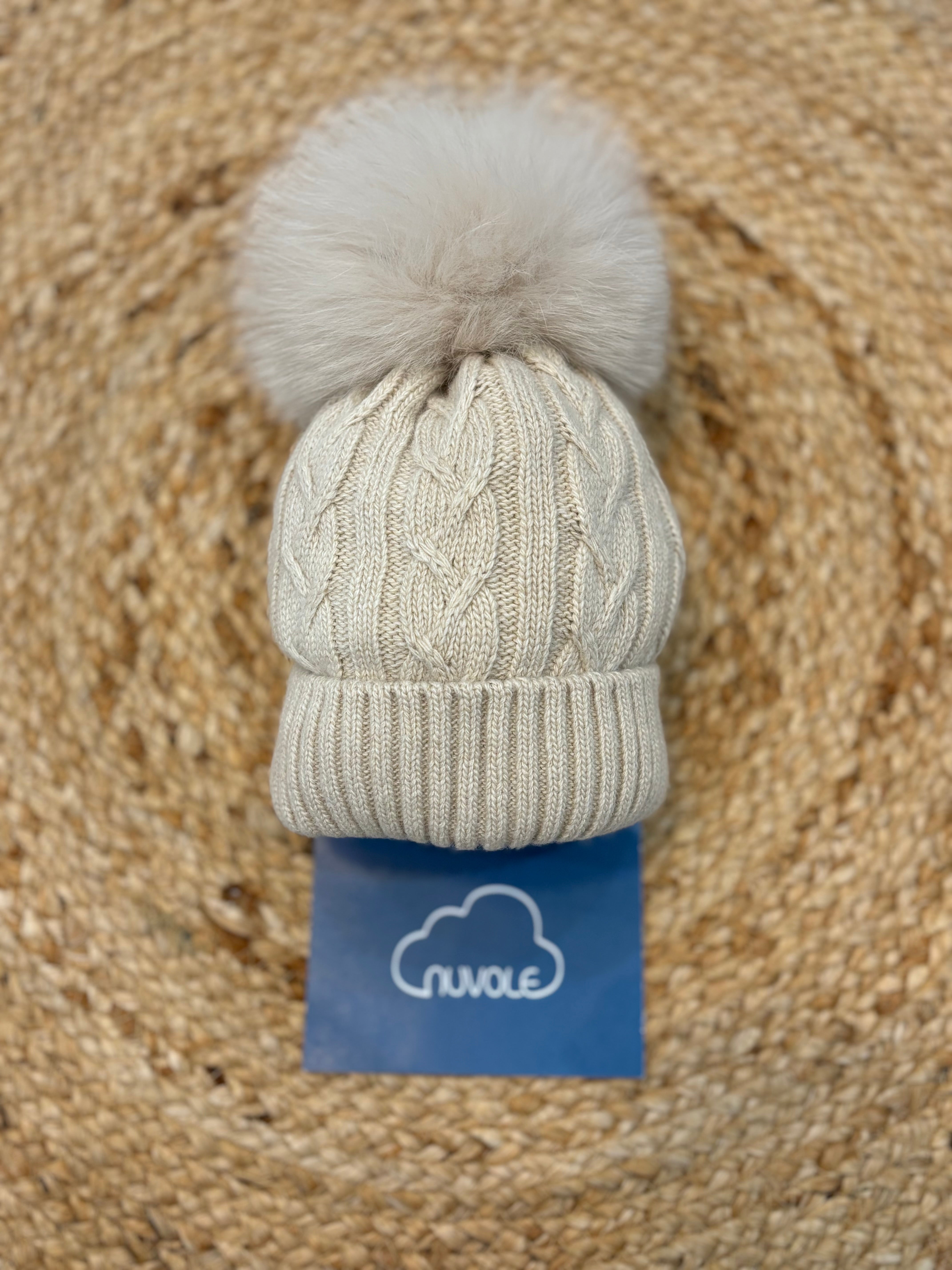 Cappello in miato cashmere con lavorazione trecce e pompon in murmasky