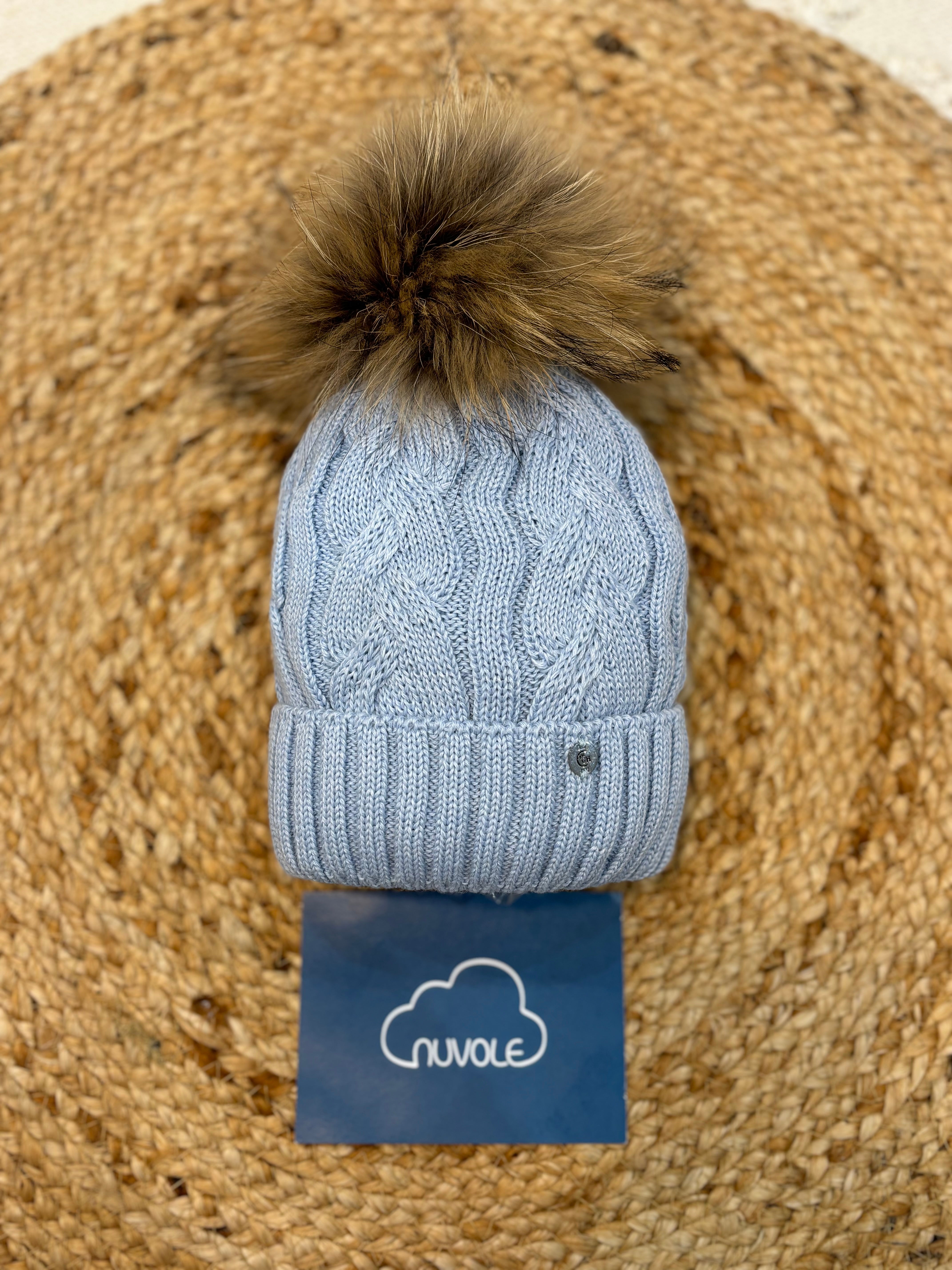 Cappello in lana con lavorazione trecce e fodera in cotone tono su tono, pompon in murmasky
