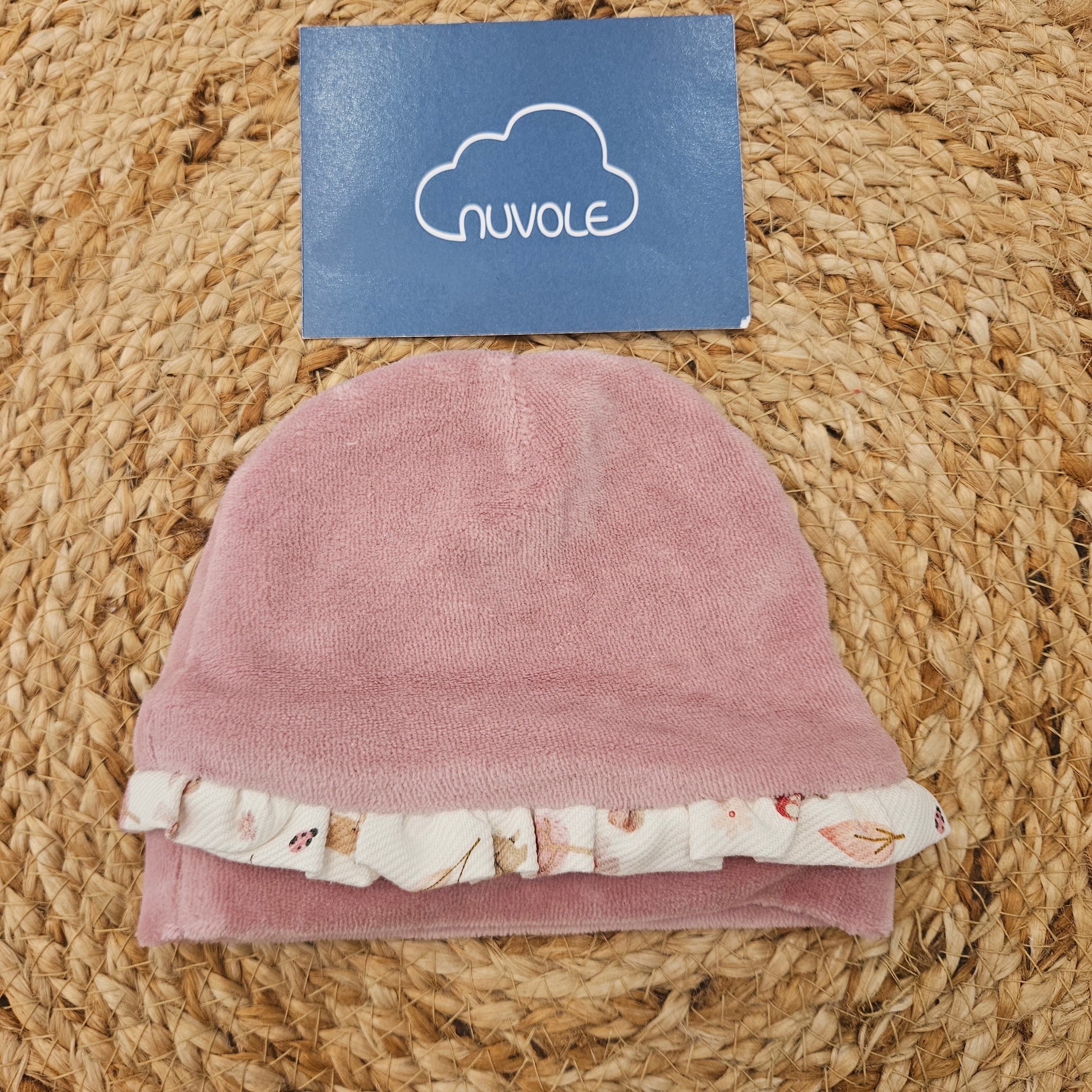 Cappellino in ciniglia biabco con simpatiche orecchie a contrasto