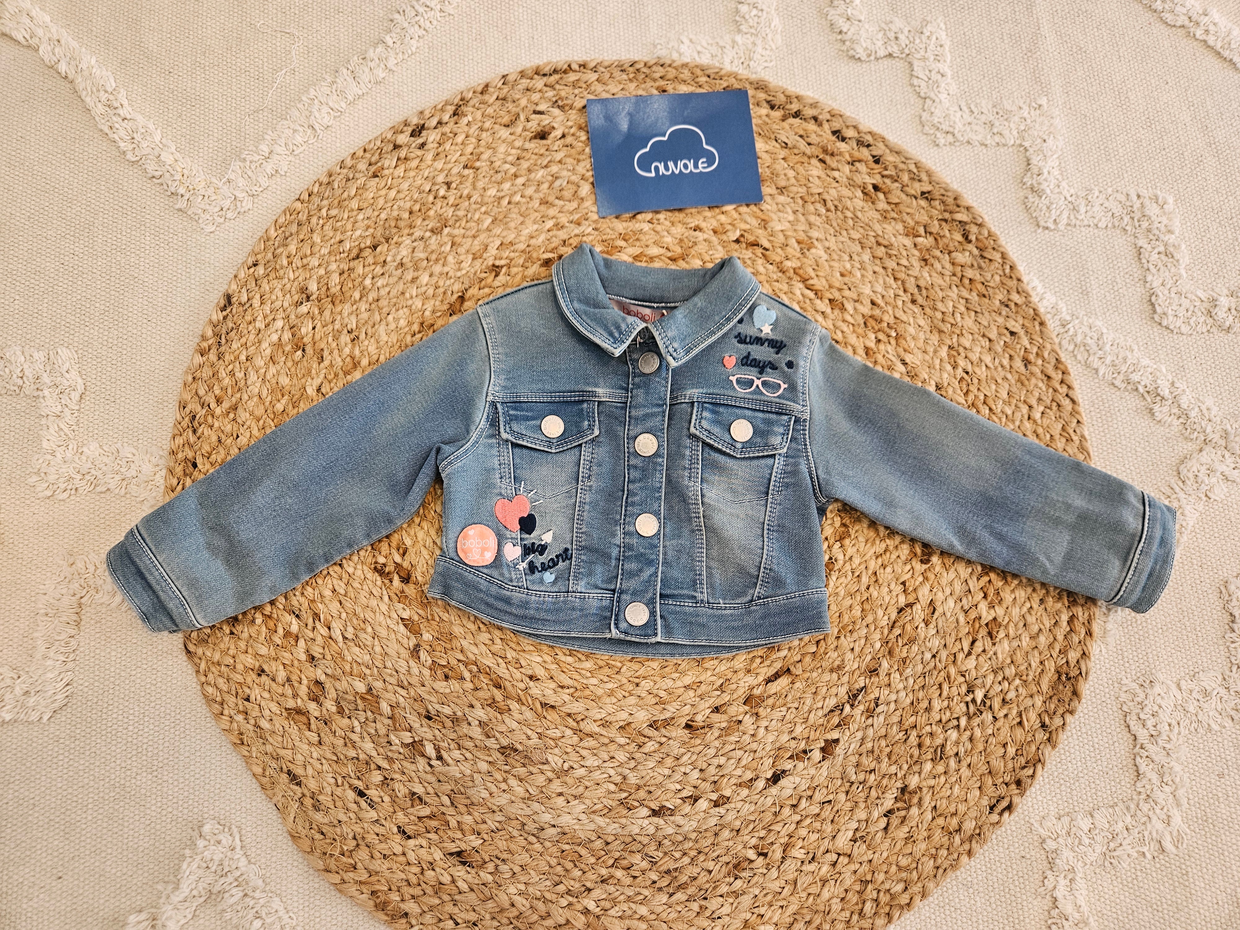 Giacca in denim per bambina versatile con decorazione in pizzo sul retro. Il collo è rotondo e le maniche sono lunghe, ideali per la primavera. Il tessuto è in maglia, che offre comfort e durata. Il colore è blu scuro. La chiusura è con bottoni a pressione, facile da usare per i piccoli. Questa giacca è un capo essenziale per il guardaroba di ogni bambina.