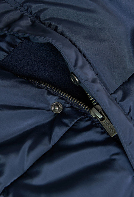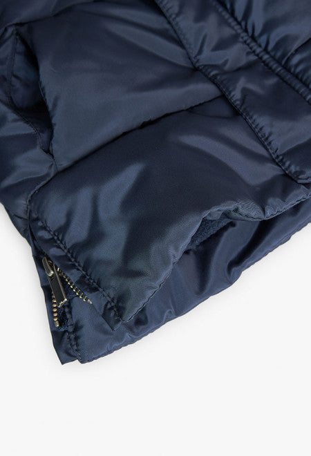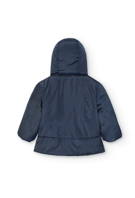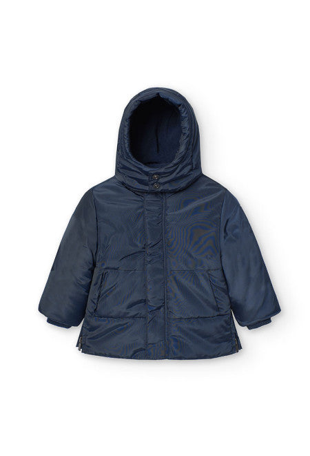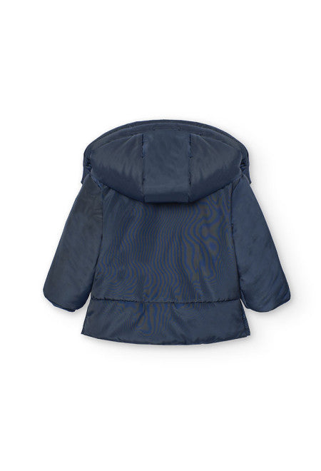 Giubbino in tessuto tecnico per bambini, ideale per l'inverno. Il suo design a tinta unita blu navy è versatile e facile da abbinare. Il parka è dotato di un cappuccio staccabile, perfetto per adattarsi alle condizioni atmosferiche. La chiusura a scatto è semplice e sicura. Le maniche lunghe offrono una protezione totale contro il freddo. Il tessuto tecnico è resistente e durevole.
