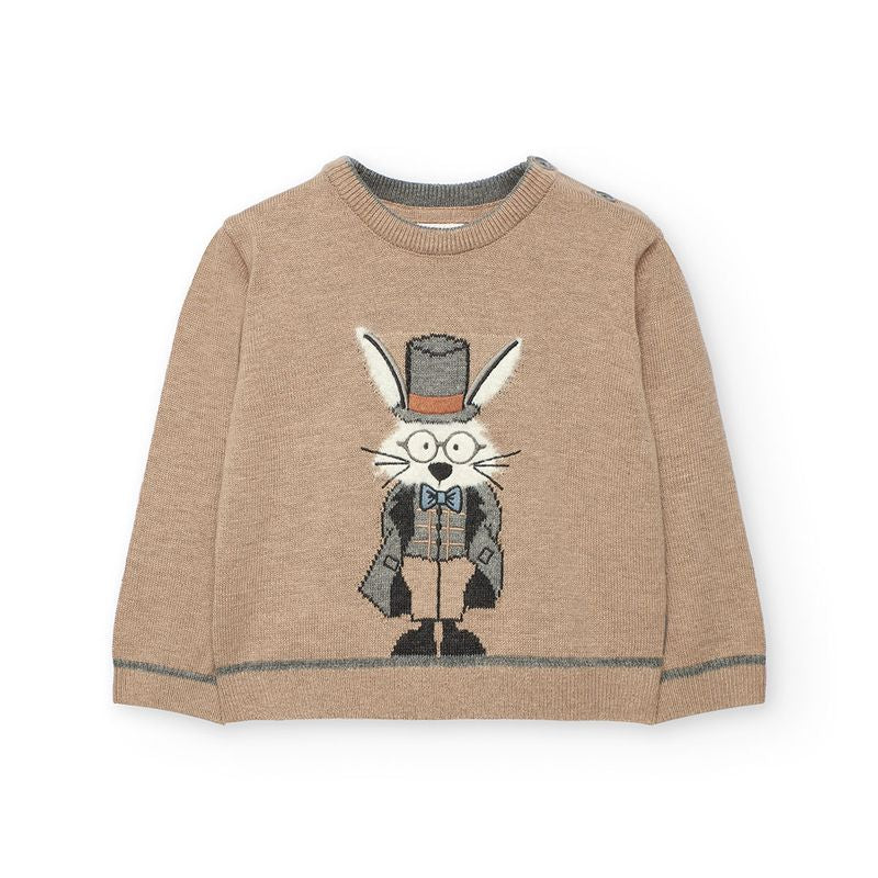 Caldo maglione in lana rasata con illustrazione.