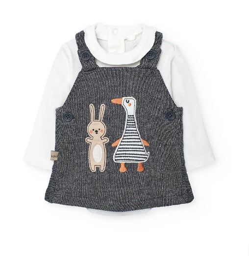 Set di felpa e pantaloni in maglia stampata, ideale per neonate nelle stagioni autunnali e invernali. Felpa bianca con la scritta "DREAM" e piccoli dettagli di animali, apportando un tocco divertente e affascinante. Pantaloni beige che completano il set con una stampa di pois in vari colori, aggiungendo stile e dinamismo. Realizzato in un tessuto morbido, garantisce comfort e calore per la pelle delicata del bambino