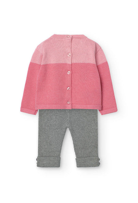 Set il cui design comprende una stampa delicata che aggiunge un tocco di tenerezza. Il collo rotondo e le maniche lunghe garantiscono comfort e protezione nelle giornate invernali. Il tessuto a maglia rosa è morbido e caldo, perfetto per la pelle sensibile dei più piccoli. La chiusura a bottoni facilita il cambio d'abito. È un capo essenziale per il guardaroba del vostro piccolo durante la stagione fredda.