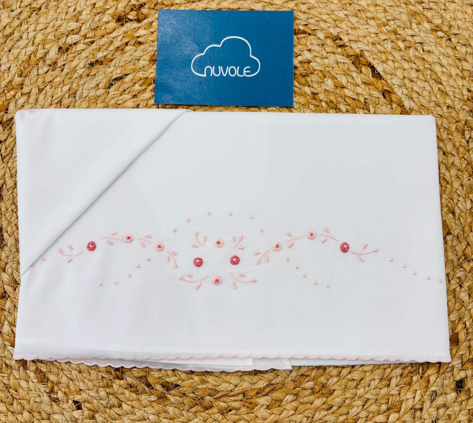 Set lenzuola ricamate in cotone composto da lenzuolo, federa per il cuscino e copri materassino con angoli