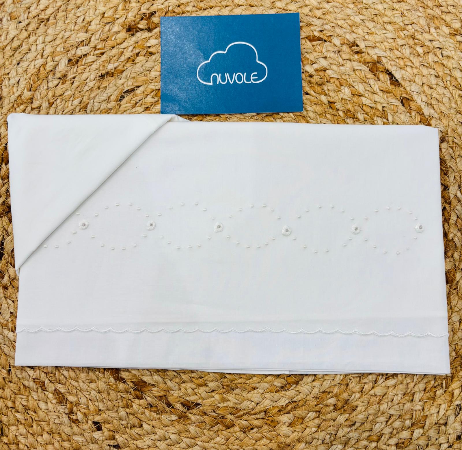 Set lenzuola ricamate a mano in batista di cotone, composto da lenzuolo, federa per il cuscino e copri materassino con angoli