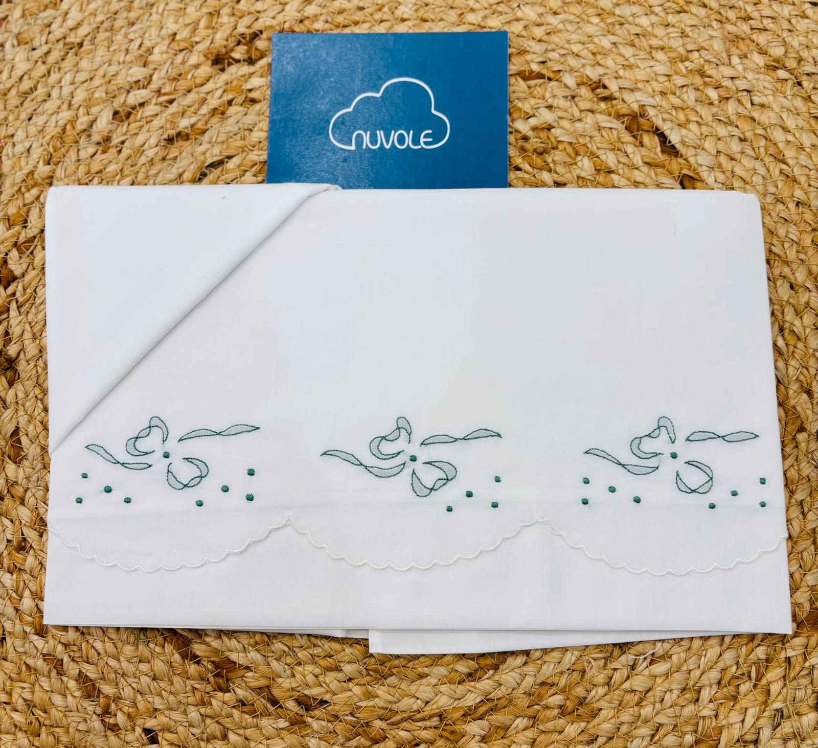 Set lenzuola ricamate a mano in batista di cotone, composto da lenzuolo, federa per il cuscino e copri materassino con angoli