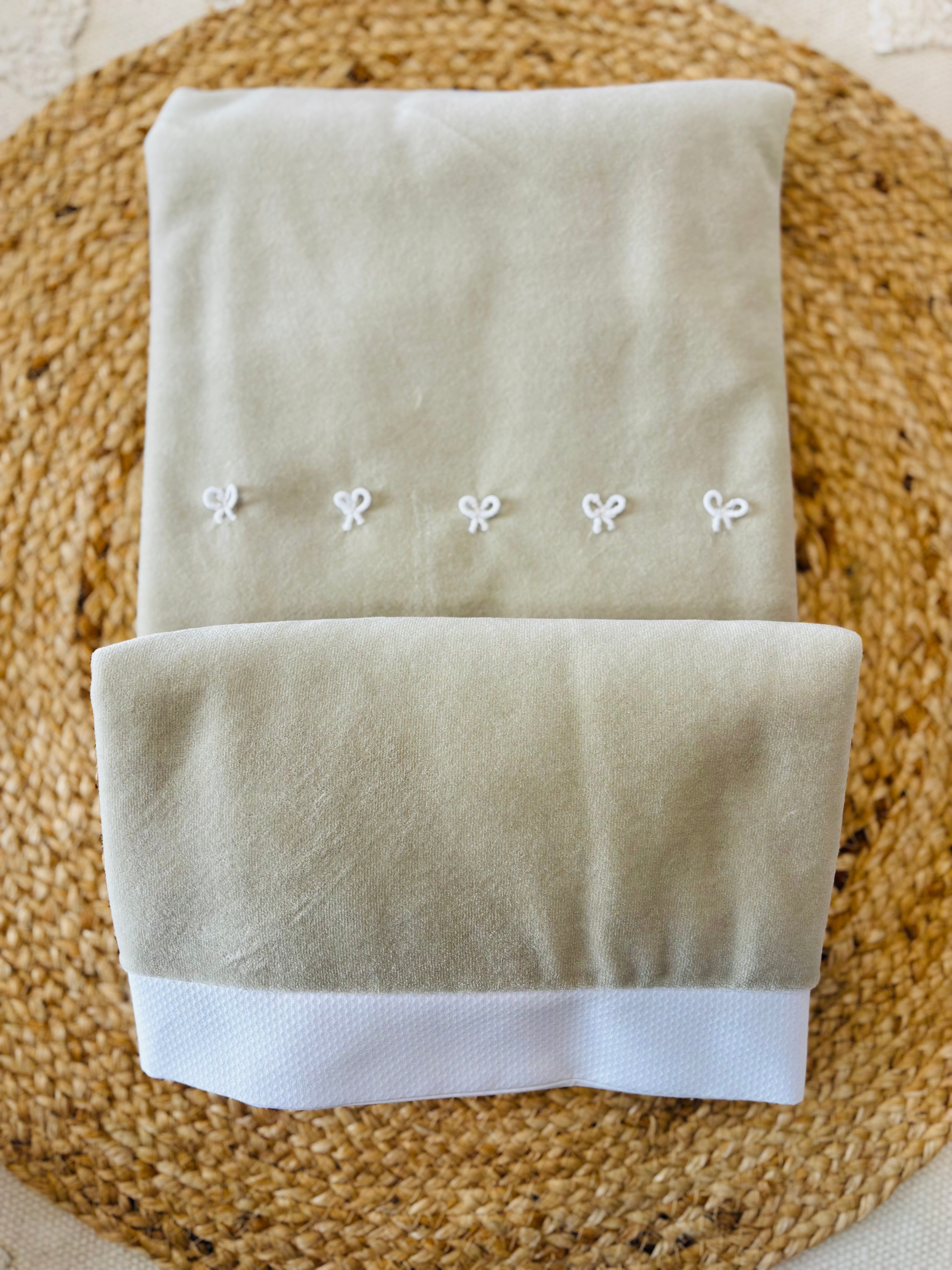 Morbida coperta in ciniglia con inserto in cotone fantasia fiori.