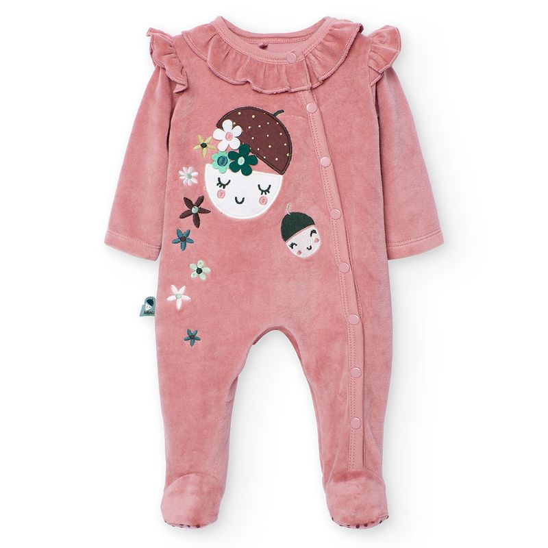 Tutina in ciniglia fantasia con pratica apertura a zip laterale.