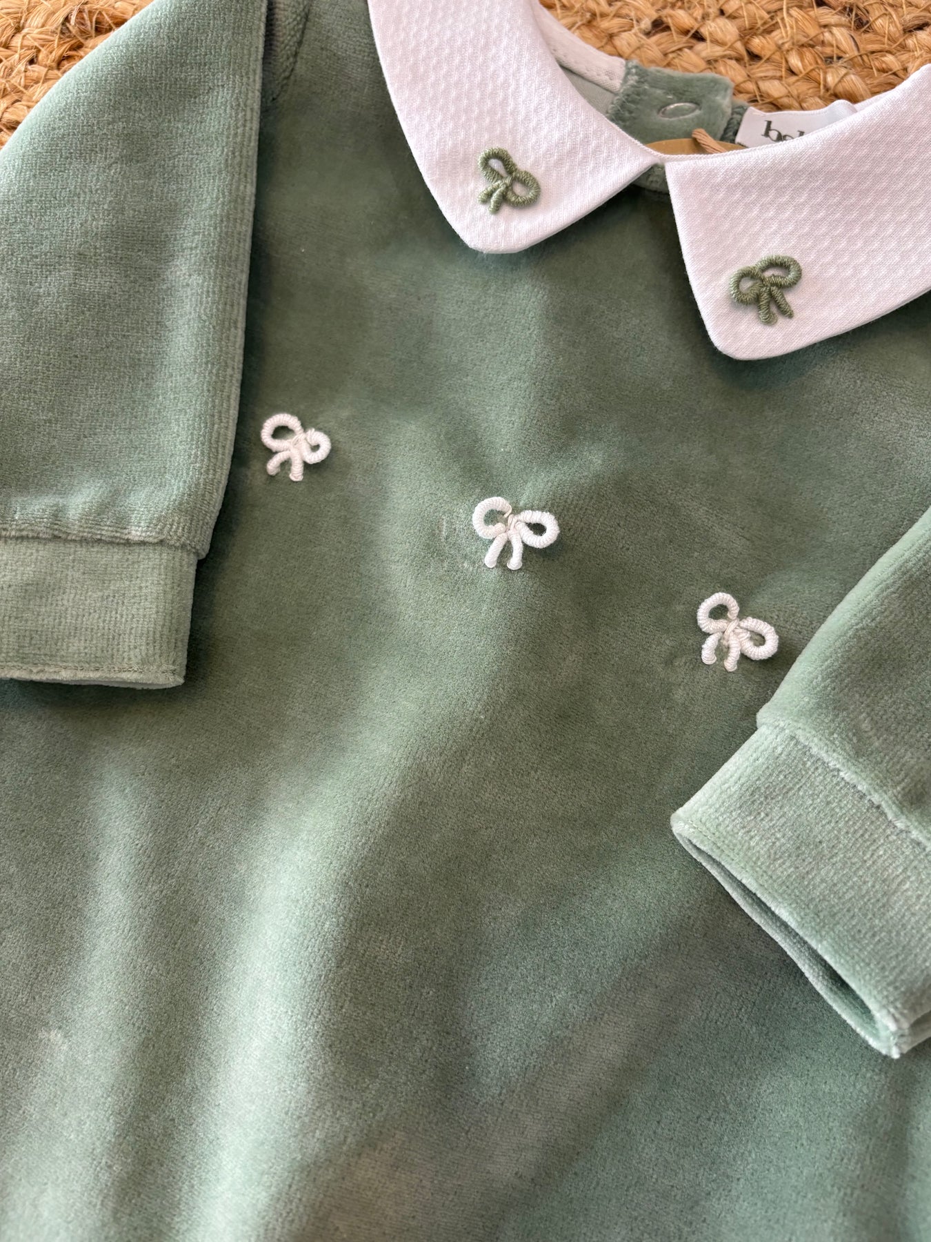 Morbida tutina in ciniglia con abbottonatura e pratica apertura al fondo per il cambio del pannolino