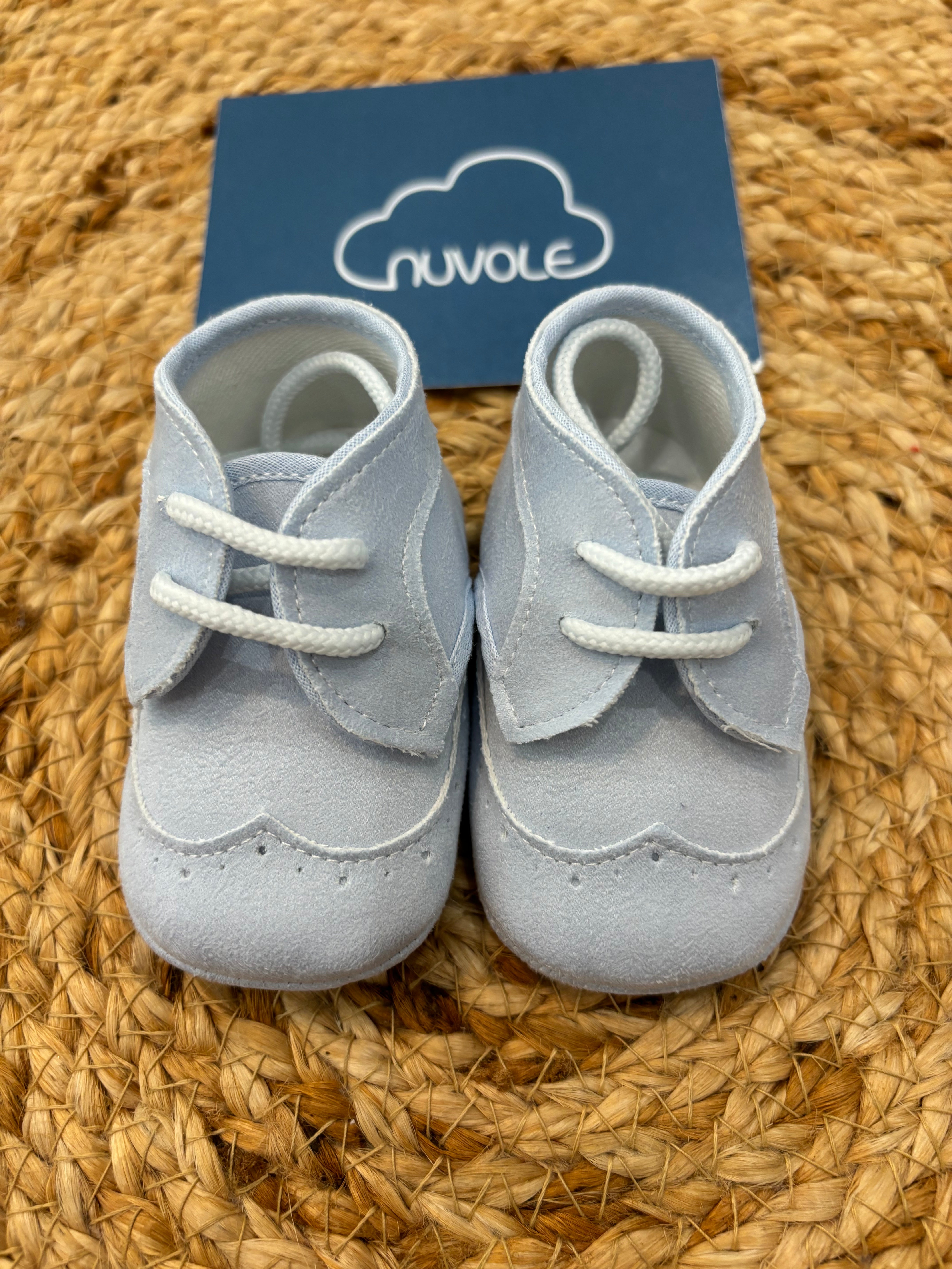 Scarpa culla modello francesina in camoscio colore verde bottiglia,con fibbia in metallo. La scarpa è rivestita in camoscio colore blu notte